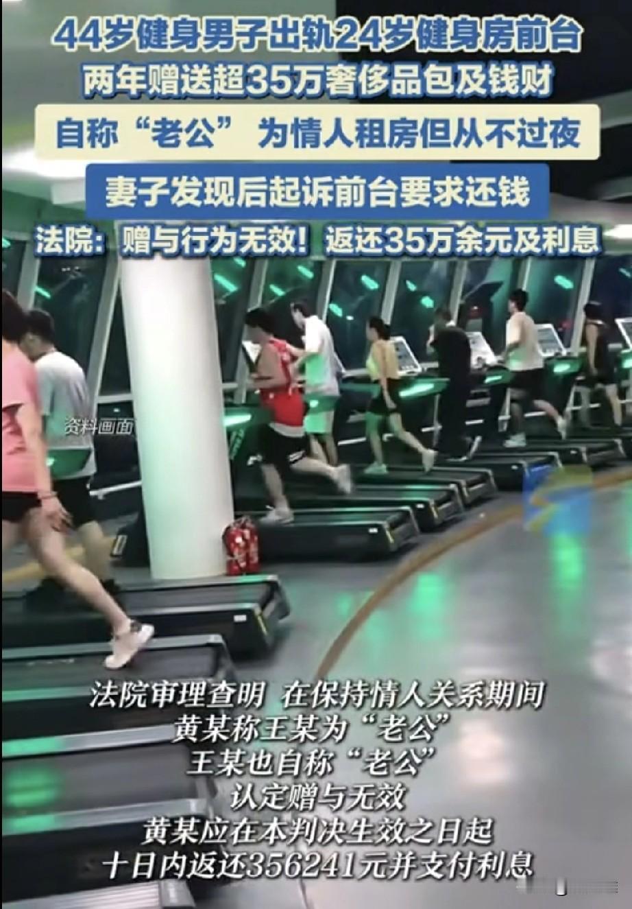上海一位44岁的大哥在健身房认识了24岁的前台姑娘,一来二去两人发展成婚外情,大哥在外租房常与情人幽会,还给姑娘转钱买礼物,前后花了三十多万,后来妻子发现了,大哥赶紧回归家庭,妻子转头就把姑娘告上法庭,要求还钱。法庭上,大哥还主动拿出转账记录当证据。最后法院判了:这钱是夫妻共同财产,大哥私自赠与违反公序良俗,姑娘得把35万多元全退回去。 这叫什么事,姑娘虽然有错,但是也付出了青春,到头来一场空,而男子却可以全身而退,实在是不公!