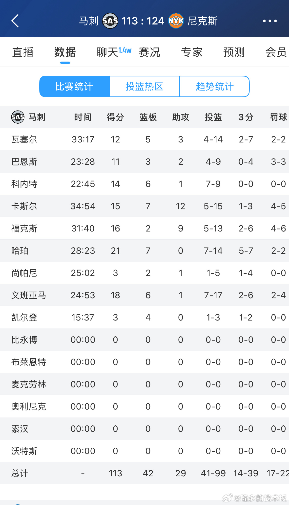 尼克斯124-113力克马刺,赢得本届杯赛冠军🏆阿奴诺比28分9板,布伦森25分,文班亚马18分马刺vs尼克斯
