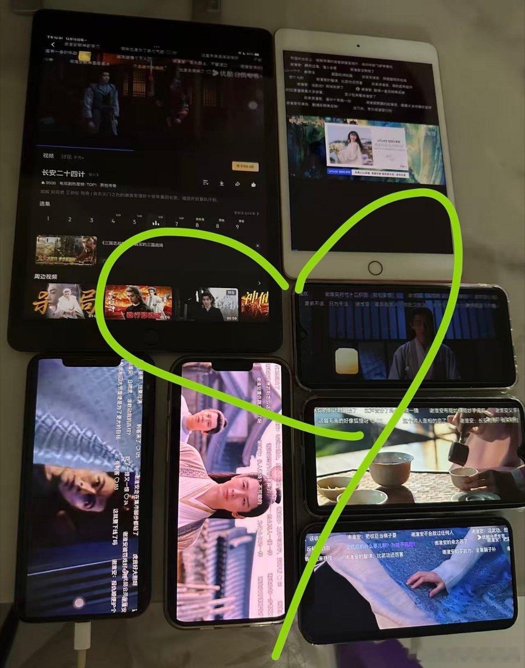 天啦噜,一个手机6个裤子账号?有个粉丝买了几个100多的手机?家里插座够吗?cy粉丝太努力了