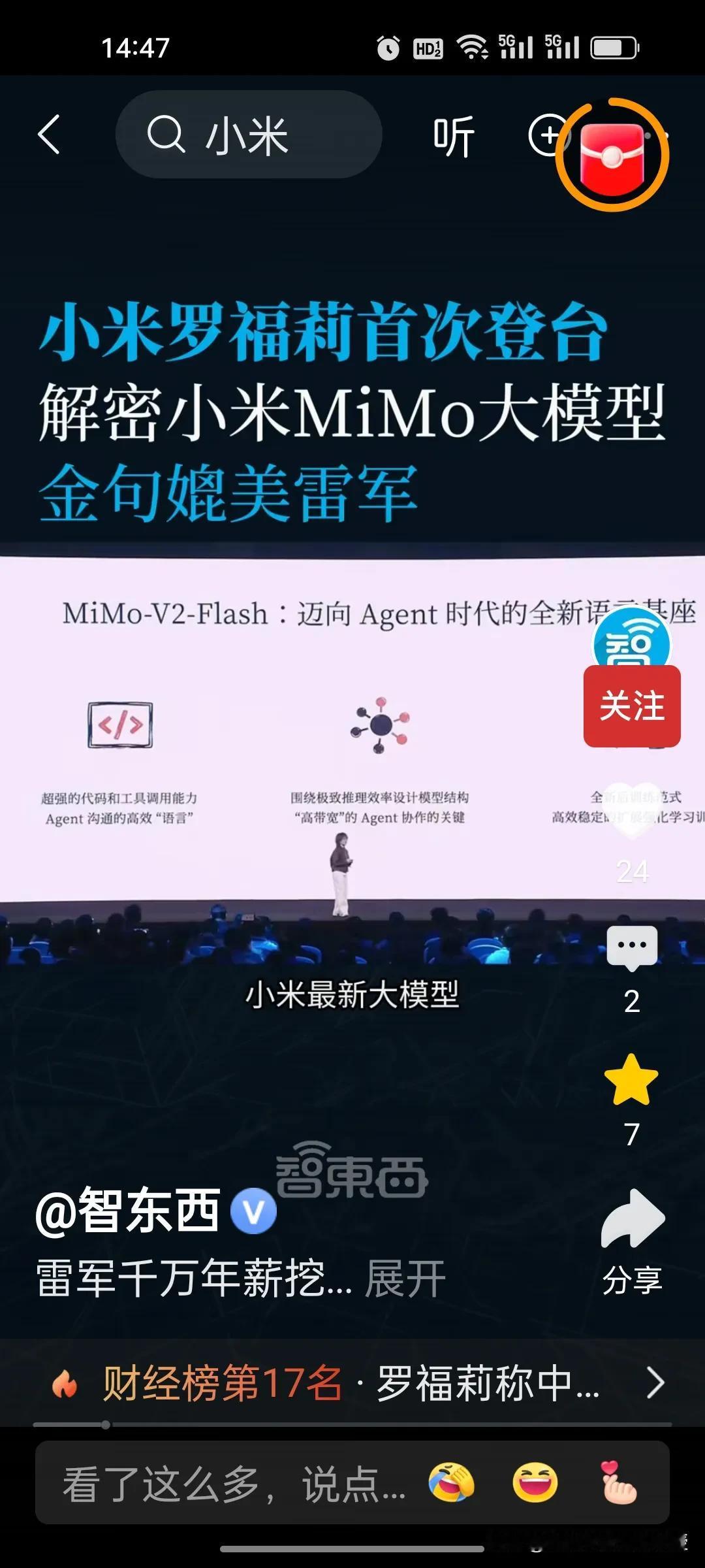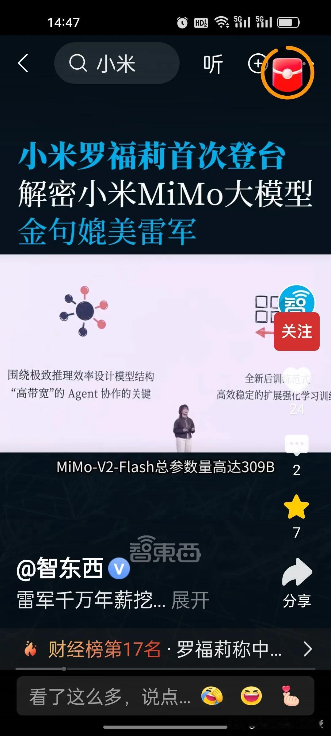 都说罗福莉是雷军千万年挖来的,但确实是宝藏级别的“天才女孩”啊!罗福莉入职小米仅1个月,首秀就甩出王炸模型MiMo-V2-Flash! 此模型三大核心优势不得不服: 1. 编程能力开源第一,SWE-bench得分73.4%; 2. 推理速度飙至150 tokens/秒,比DeepSeek快3倍; 3. 成本压到极致,仅为同类模型的2.5%。 全球开源TOP2,参少一半性能还能打,雷军这次确实挖到了宝。 看了罗福莉这场发布会首秀,虽然有点小紧张,但是实力有目共睹,刚刚加入小米一个月就硕果累累,小米这次在AI领域要逆袭了。