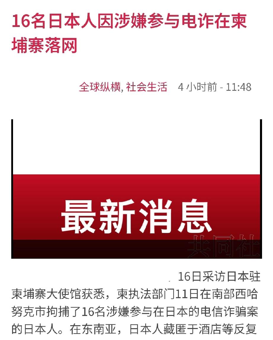 原来日本也有电诈?柬埔寨日本大使馆消息,日本逮住了16个日本电诈分子,他们藏匿在柬埔寨的公寓大楼内,对日本进行诈骗。 看完我有一个问题? 这柬埔寨怎么有点电诈老窝的感觉呢?怎么好多国家的电诈分子都跑柬埔寨去了? 这两天柬埔寨和泰国打起来了,柬埔寨电诈园区被端了,不知道大家有没有和我一样,手机都安静了许多。 看来,哪里都有电诈啊,反诈防诈从…,柬埔寨做起! 柬埔寨电诈 柬埔寨电诈
