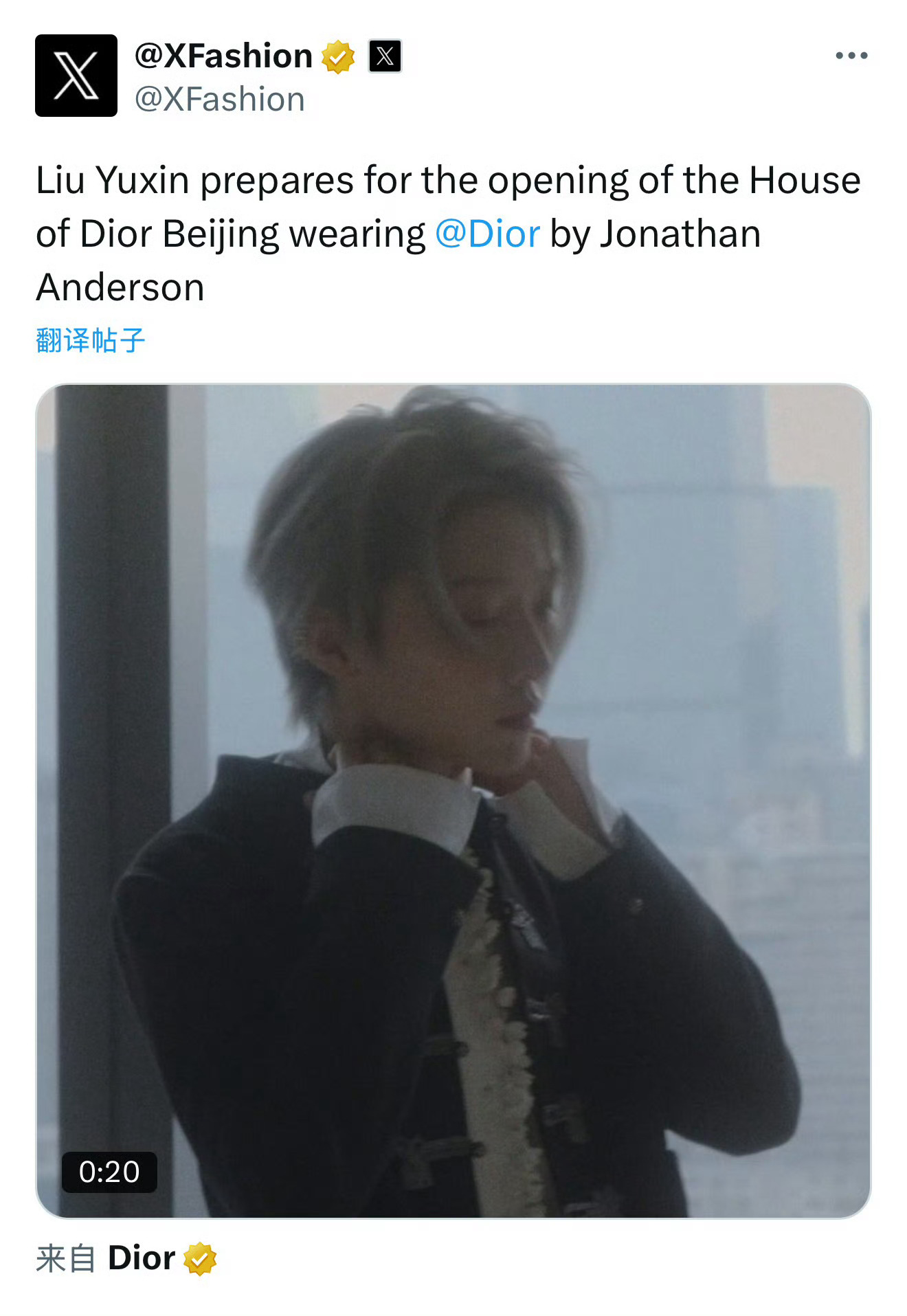 刘雨昕的海外影响力好🐮,X(推特)的平台官方账号都发了她在北京迪奥之家开幕活动的试装视频