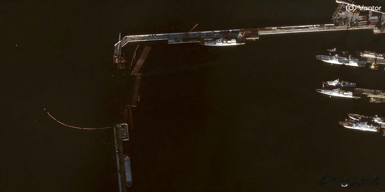 俄罗斯新罗西斯克港的最新卫星照片,12月15日,乌克兰的自杀式水下无人艇曾试图在该港攻击驻泊在港内的一艘“华沙女人”级潜艇。 第一张照片已经可以清楚地看到,无人艇是撞在码头上爆炸的。 第二张照片是给那些询问防护网的人看的。如你所见,防护网是存在的。乌克兰的无人艇是如何溜过去的,或是通过其他方式进入的,目前尚不清楚。