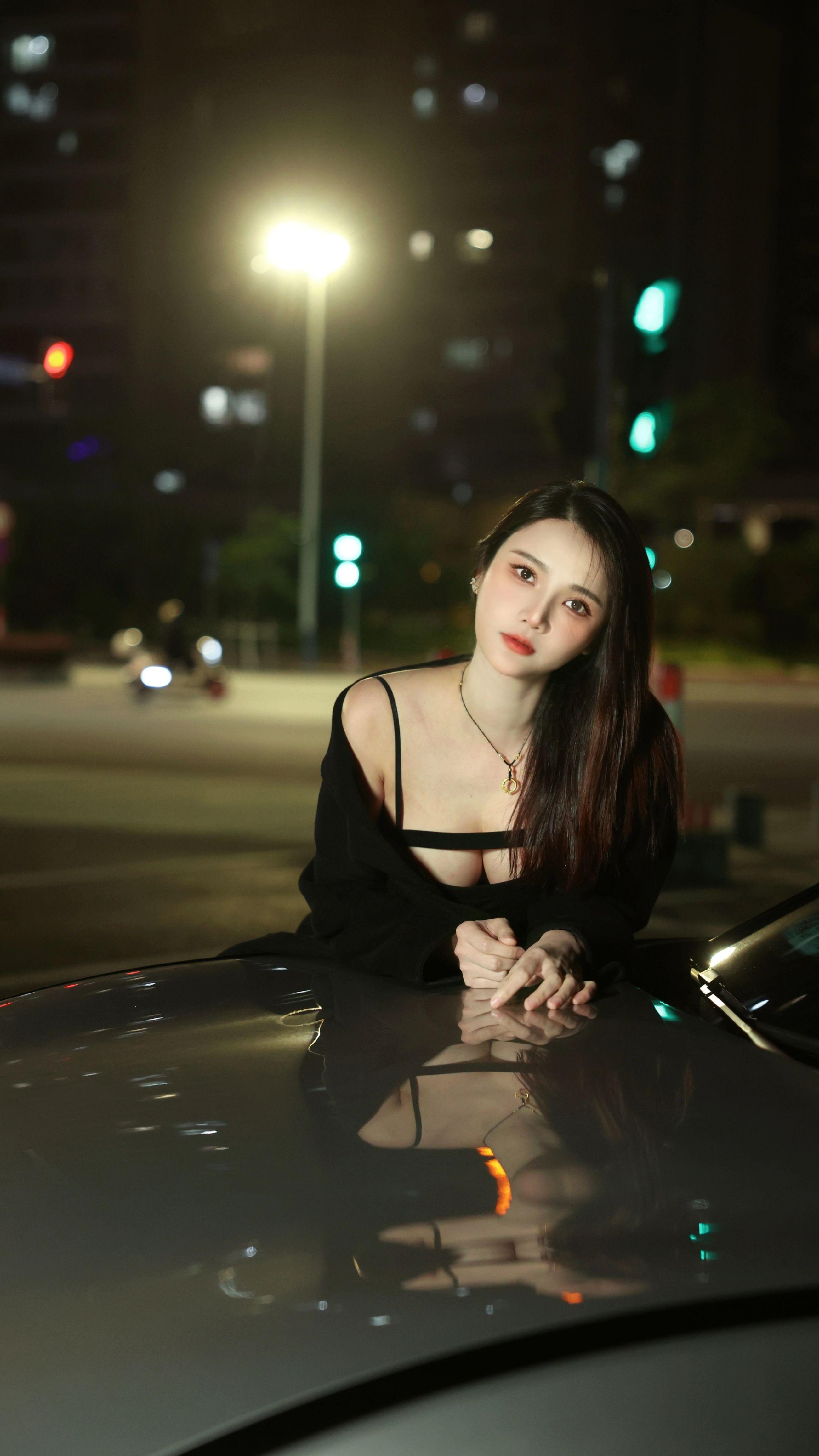 辣妹穿搭大赏街拍美女汽车摄影夜景