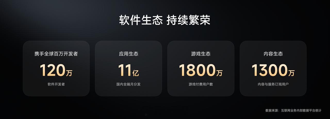 在今天的小米人车家全生态合作伙伴大会上,卢伟冰提到了一组数据,直观感受到小米生态的体量:7.4 亿全球用户、10.4 亿 IoT 连接设备,再加上 120 万开发者与 15000 家硬件合作伙伴,这就是小米一手打造的生态护城河。卢伟冰称小米用户规模超7.4亿作为小米SU7 Max 创始版车主,深刻的感受到了小米生态的协同价值。手机、家电与汽车的无缝衔接,十分便捷,小米也没有选择封闭生态,而是将车用硬件平台研发成果开源,还与比亚迪、广汽丰田等车企深度合作。这种从硬件到软件的全面开放,让"人车家全生态"不再是小米专属,成为了整个行业共赢的舞台。汽车、芯片的突破加上 AI 领域小米自研 MiMo 大模型的发布,对开发者而言,这是切入智能生态的黄金窗口期;对用户来说,也意味着更丰富的生活场景联动体验。这样的布局,友商想在未来追上小米可要费不少功夫。