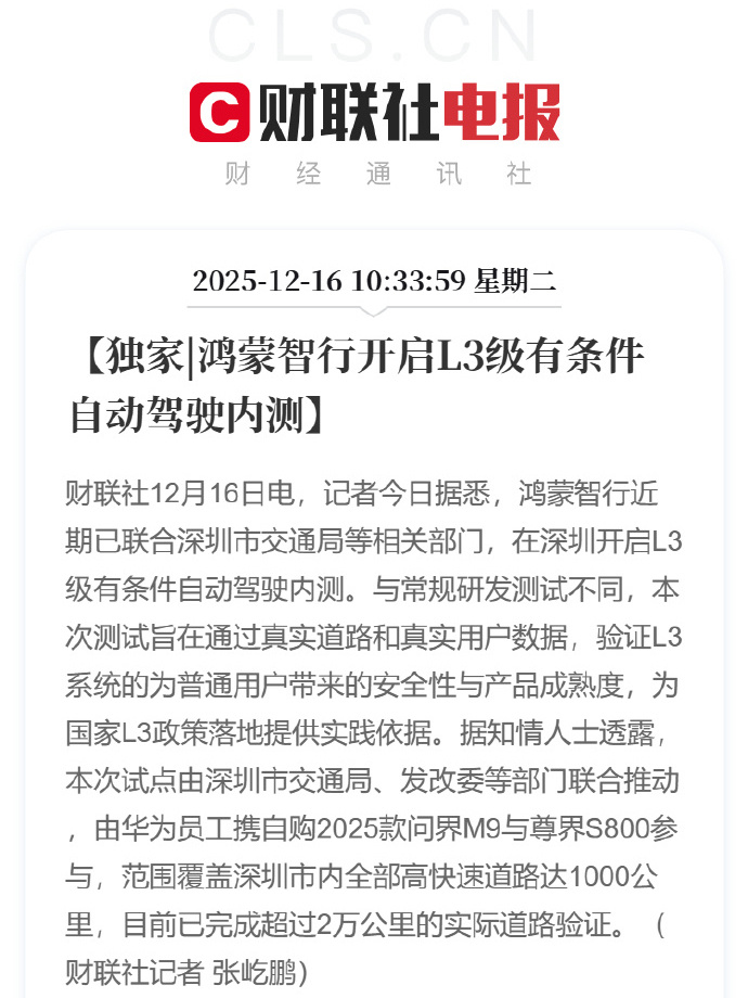【小鹏、理想等多车企获L3级自动驾驶道路测试牌照】工信部公布我国首批L3级有条件自动驾驶车型准入许可,长安、极狐旗下两款纯电动轿车获批。除了上述首批获准入资格的两家,多家车企也取得了关键进展。小鹏汽车、理想汽车分别在广州、北京获得L3级自动驾驶道路测试牌照,鸿蒙智行在深圳开启了L3级有条件自动驾驶内测,广汽昊铂获得120公里/小时的高速L3测试牌照。汽车小鹏汽车理想汽车鸿蒙智行车圈新鲜事汽车热点观察室热点观察室