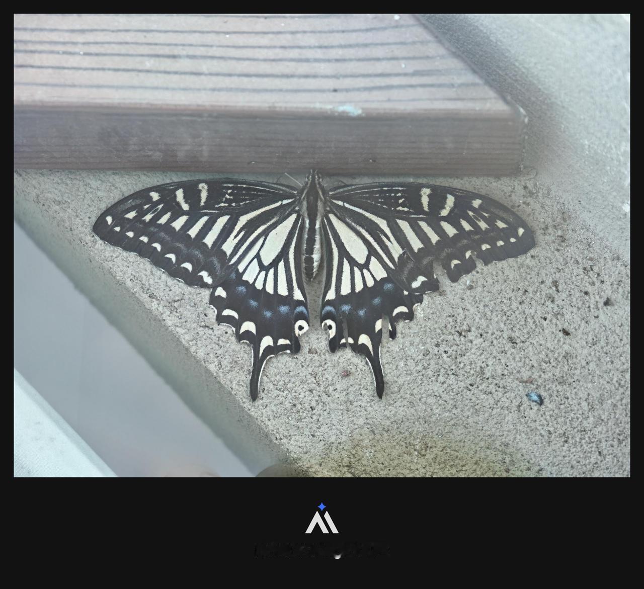 看见玻璃下面有只蝴蝶,玻璃内外都有灰,还好荣耀Magic8 Pro可以用反光消除,比肉眼看好太多了。