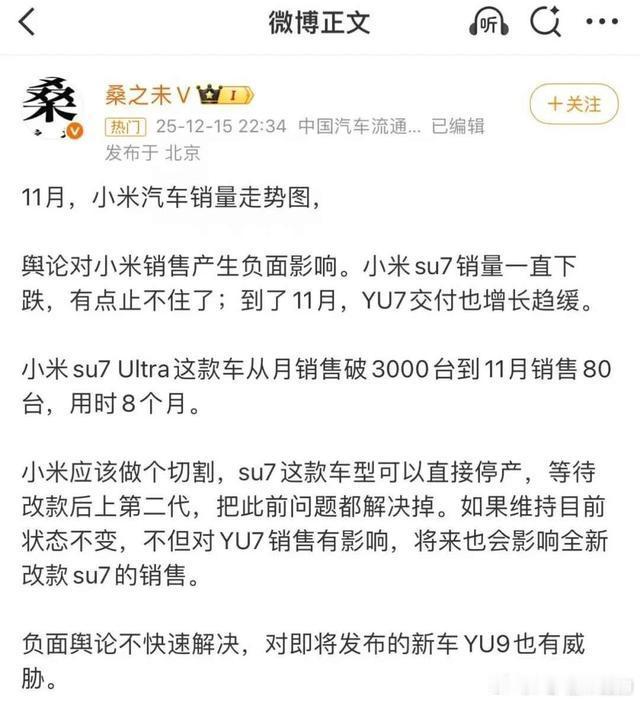 小米SU7 Ultra 11月销量暴跌至只有80台了?再结合最近su7销量也有较大下跌这两个数据一看,这个小米新一代SU7明年二季度上市 热搜合理了