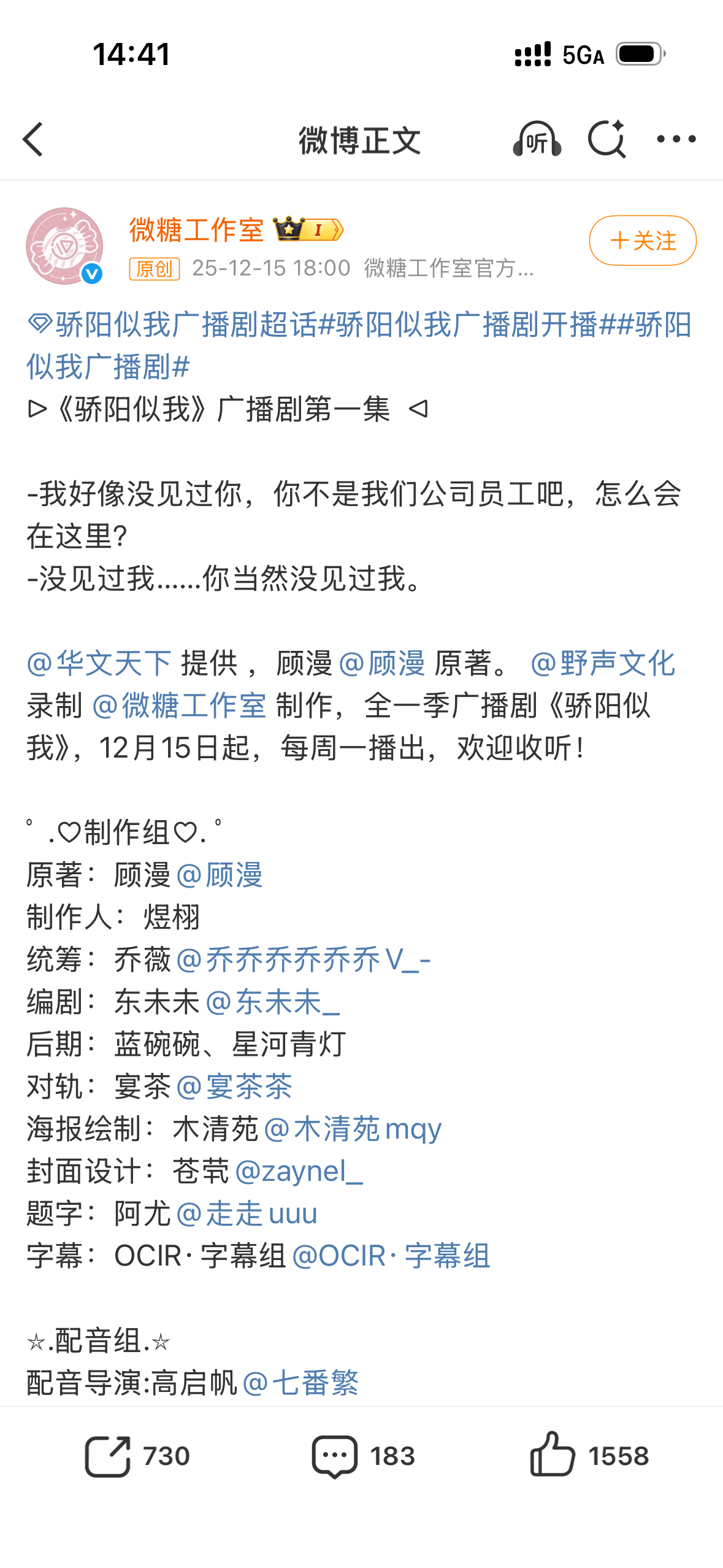 哎嘿嘿嘿 ᖰ⌯'▾'⌯ᖳ好绝美的配音阵容❗❗❗骄阳似我广播剧 聂曦光:浮梦若薇庄序:孙睿扬
