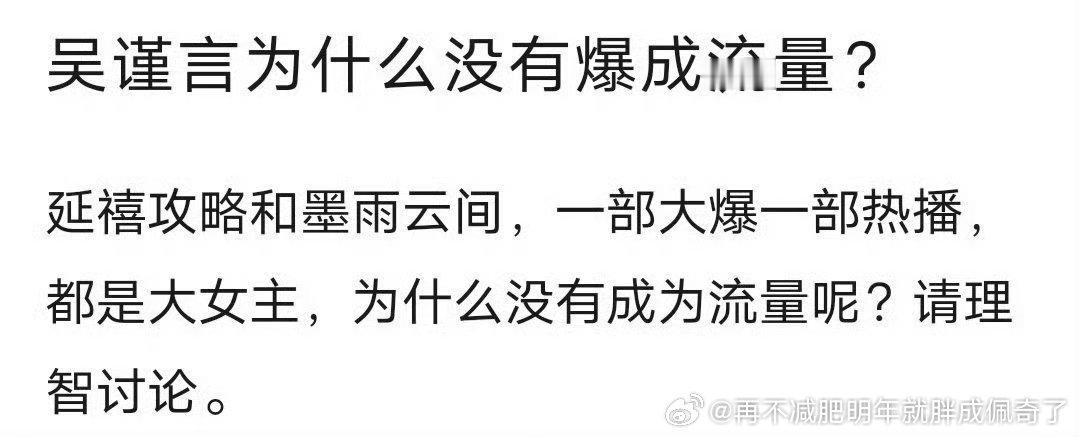 演技差、颜值一般(长相类型也不行)、没魅力、当时不会炒(跟同司白露比)宴席该爆花的不如隔壁香蜜女主吸粉十分之一(没央视那事也没多少粉)至于墨雨太下沉了大惜花芷,本来也不会火花花的