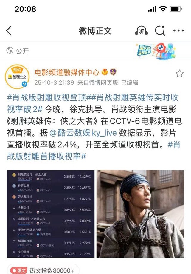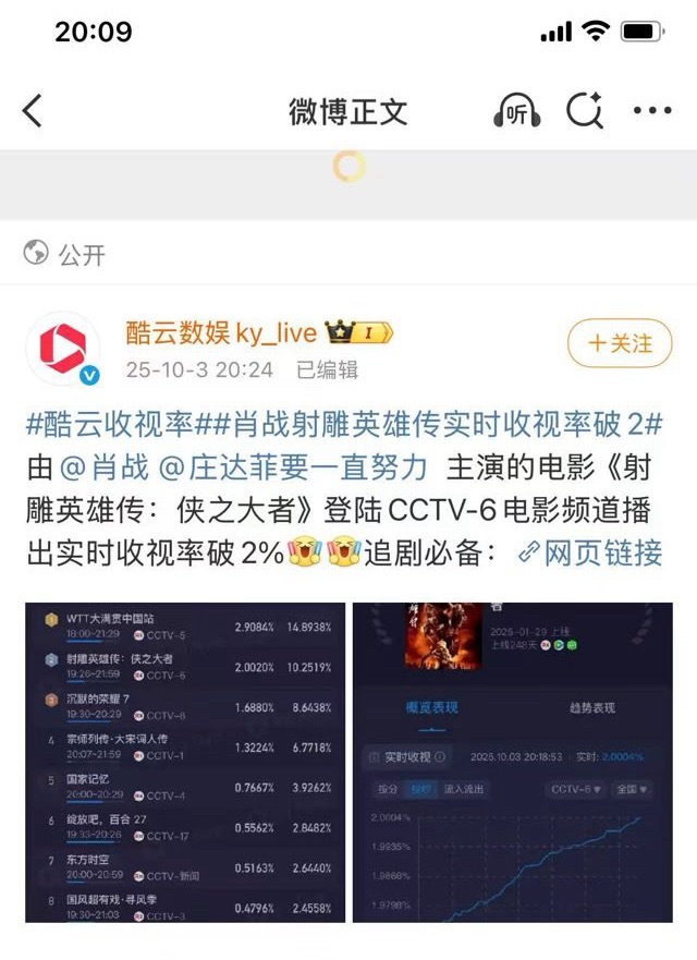 才发现酷云不仅这次把射雕名字弄错,收视起算时间比实际开播时间前移了将近1小时,结束时又同步比实际前移了1小时,历史收视也是错的,只有0.3,0.5,10月3日射雕收视有战报的破2.4了!