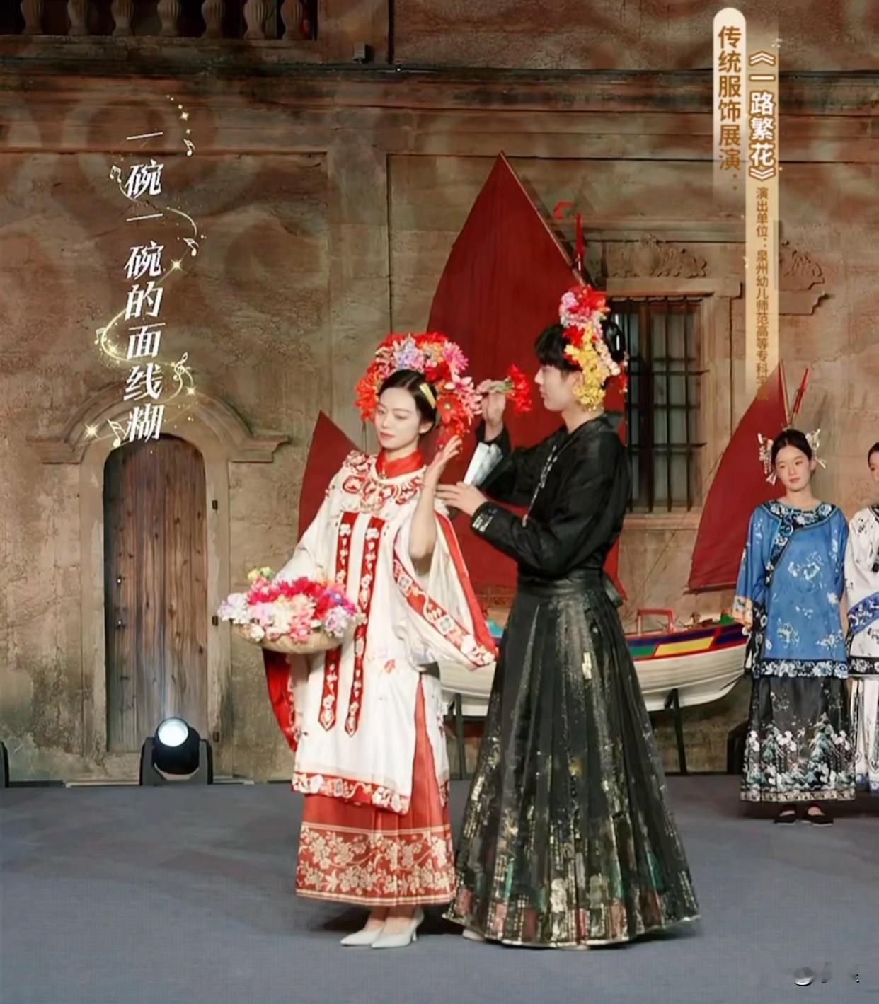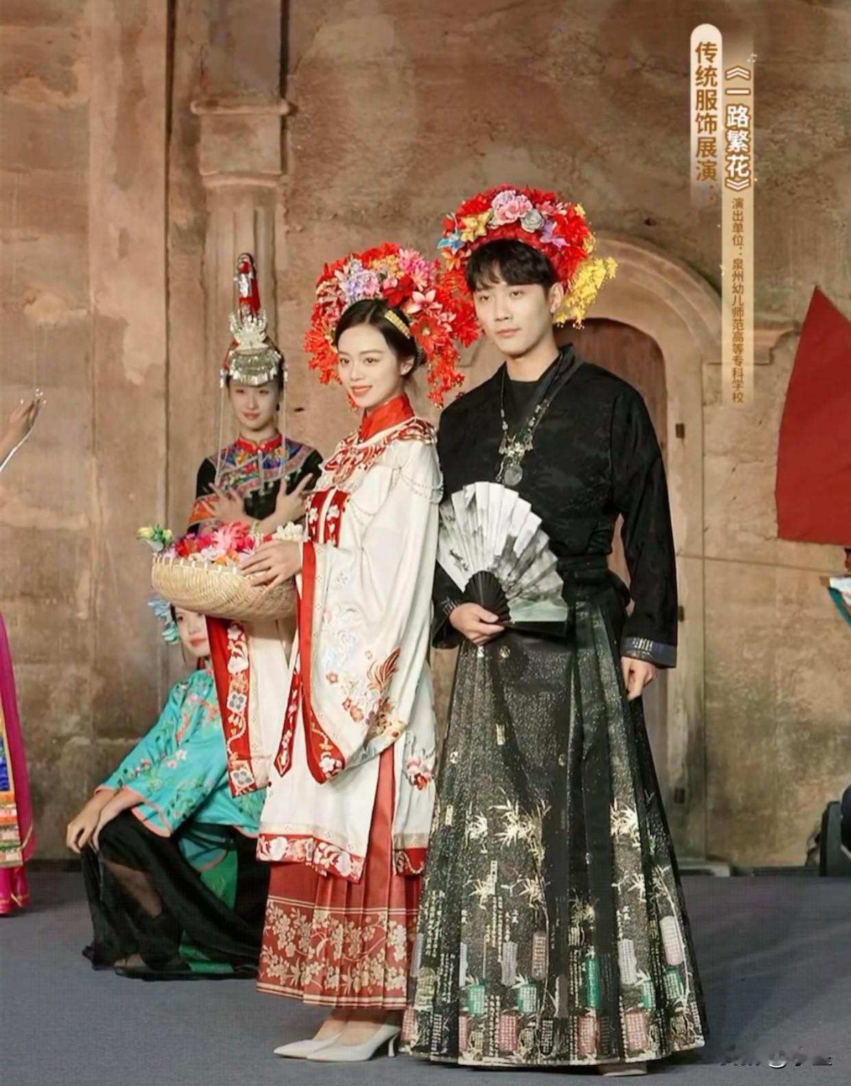 小贝和鹏鹏穿福建传统服饰走秀 一个端庄大方、优雅得体 一个玉树临风、有点紧张[偷笑] 其中有个环节是鹏鹏给小贝簪花 看着还挺养眼的 不过一走起来就看出紧张了 还不如让鹏鹏跳舞呢 他刚把“舞王”这件事弄明白 又让他进军超模界[偷笑] 太难为孩子了[大笑][大笑] 舞台上其他演员展示的服饰 真的每一套都好美 怪不得泉州能申遗呢 随处可见的文化宝藏 确实得保护起来[赞]