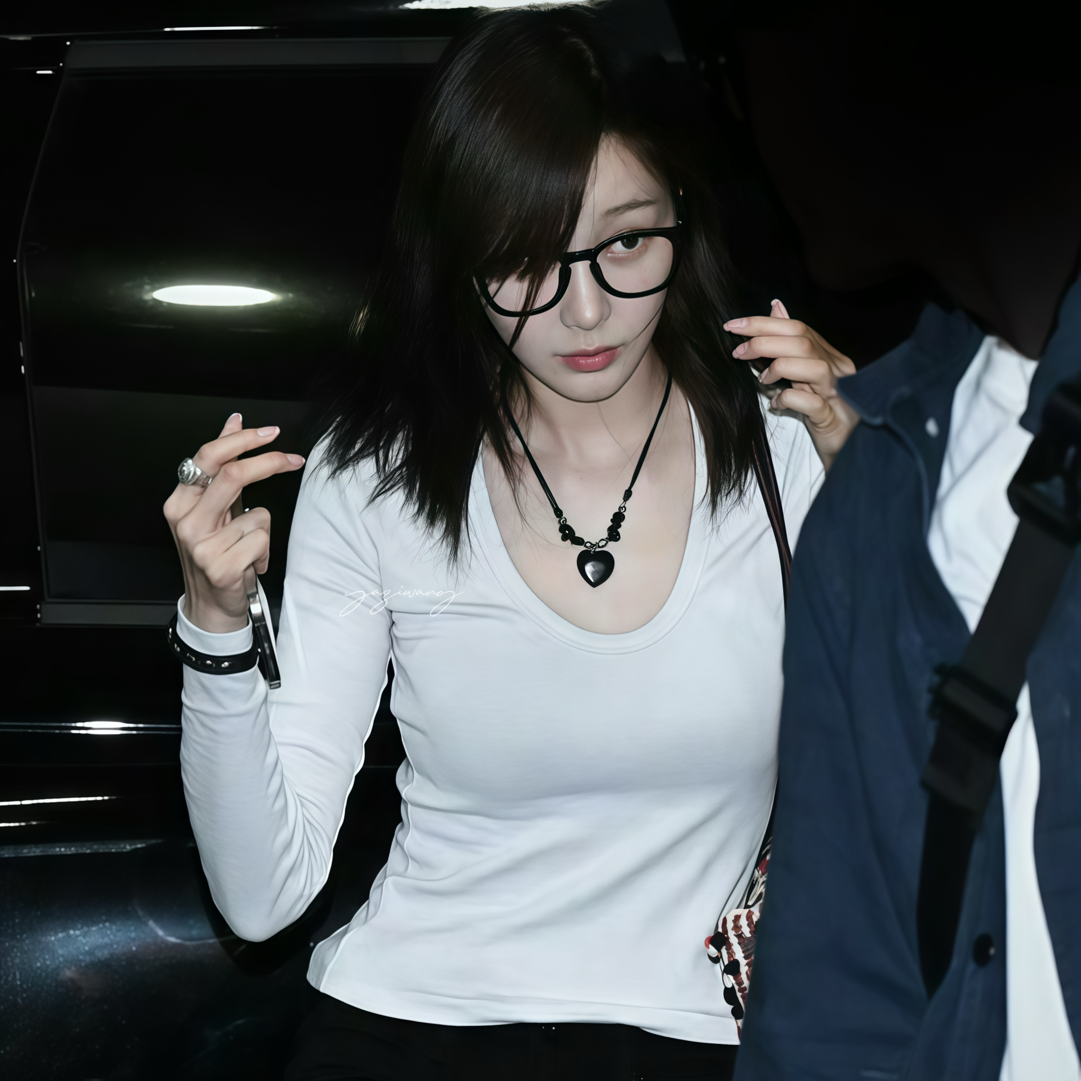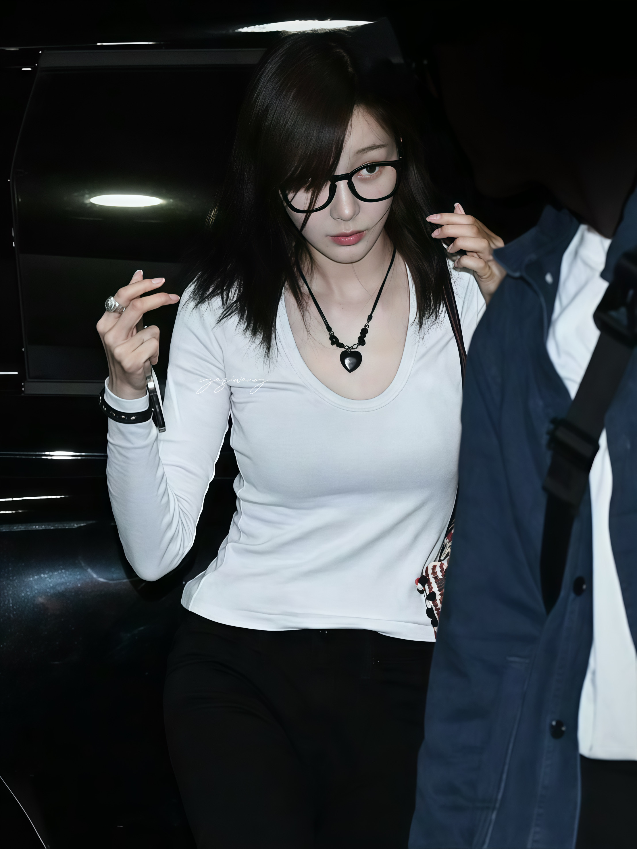 giselle 黑框白t宅女随便打扮以后呈现的轻松美
