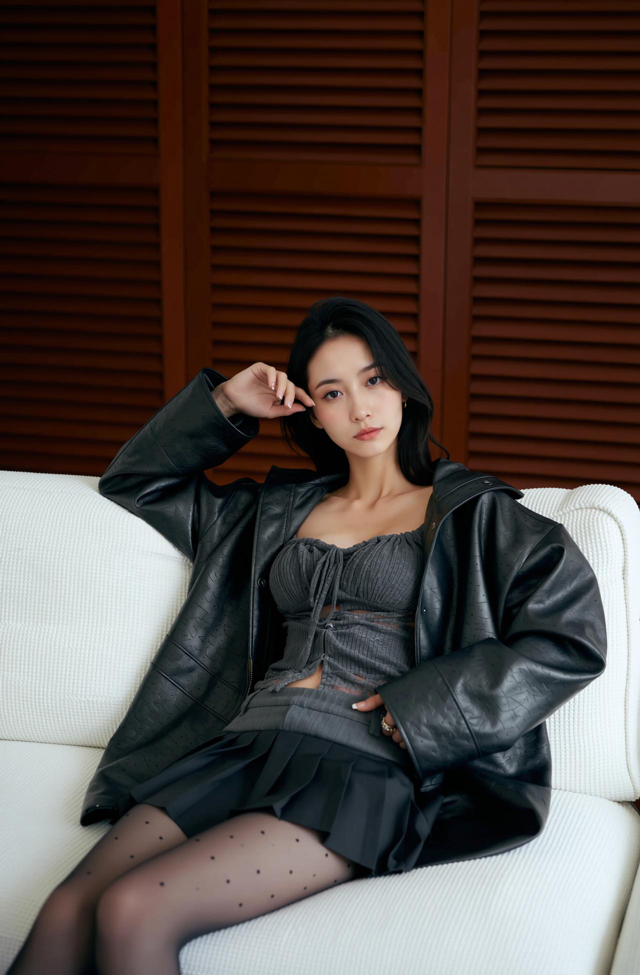 气质黑夹克搭配灰色高领衫,简约又时尚!灰毛衣穿搭 棕色夹克外套 棕色夹克穿搭 棕