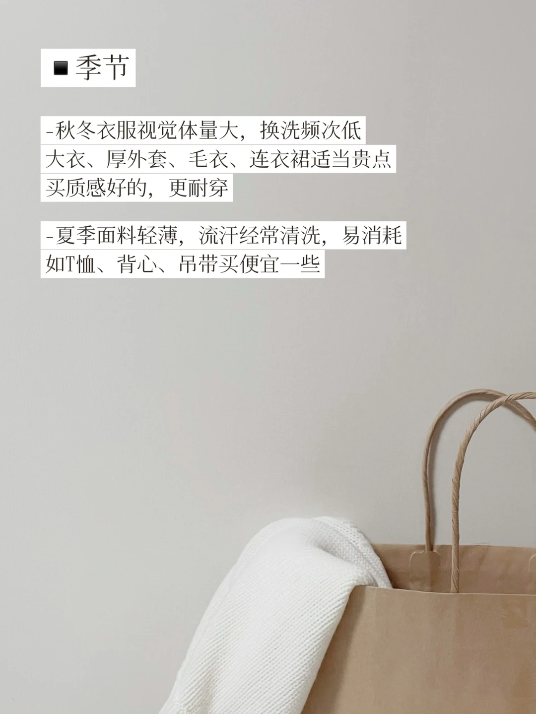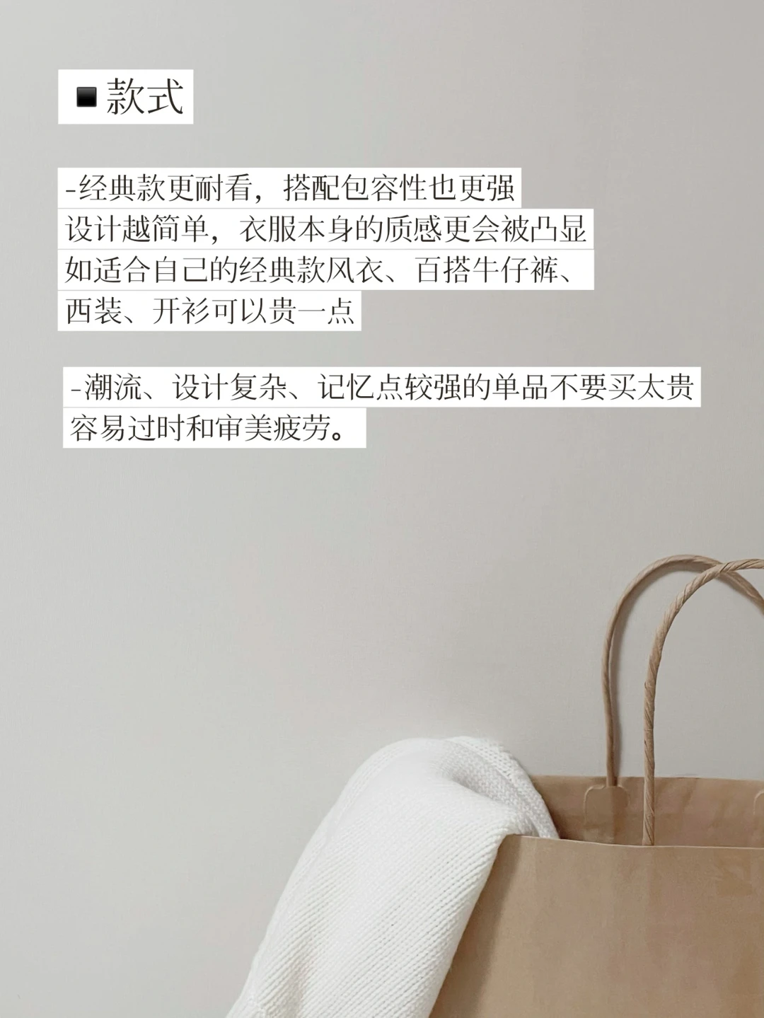 大衣、厚外套、毛衣、连衣裙可以适当贵点,买质感好的,更耐穿
