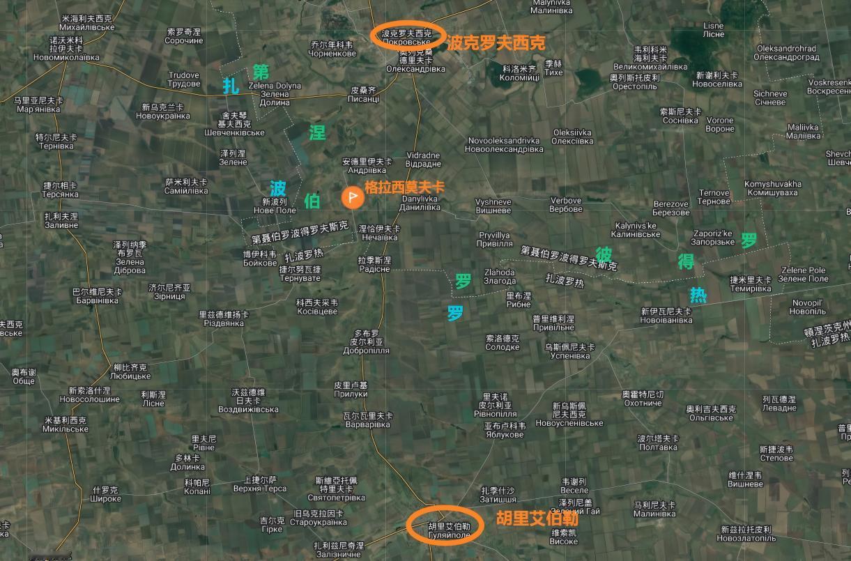 第聂伯罗彼得罗夫斯克,俄军东部集群突击队控制了格拉西莫夫卡,这个村在过去一点点,又变成扎波罗热了,可以说是交界地方。是不是格帅老家啊,呵呵
