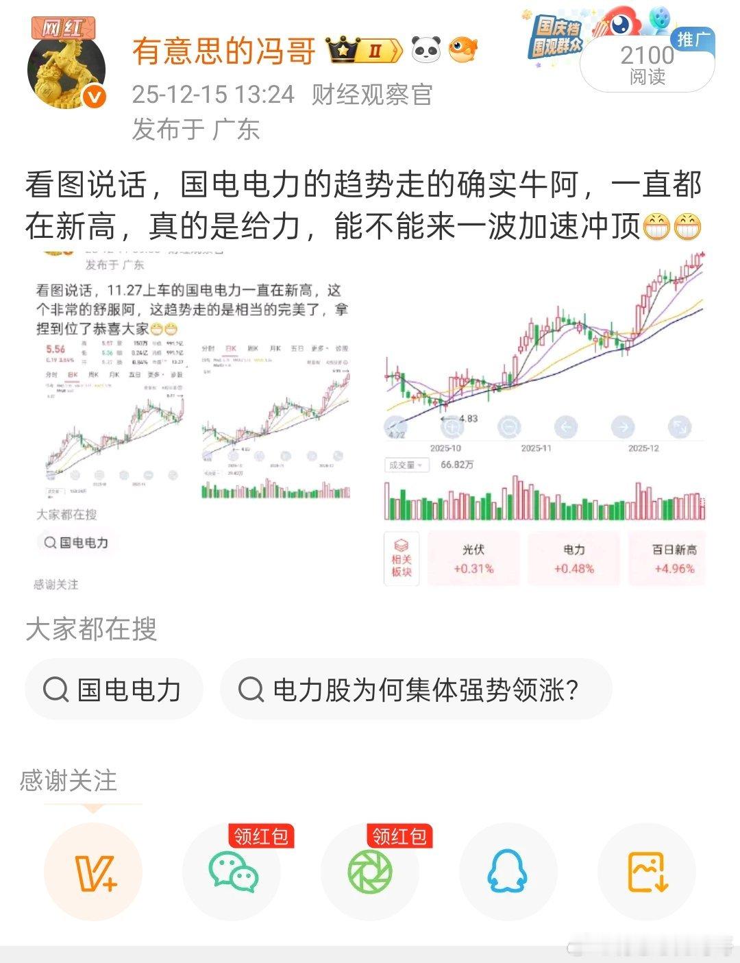 看图说话,国电电力继续新高,调整两天后今天又来了,还得是趋势魅力