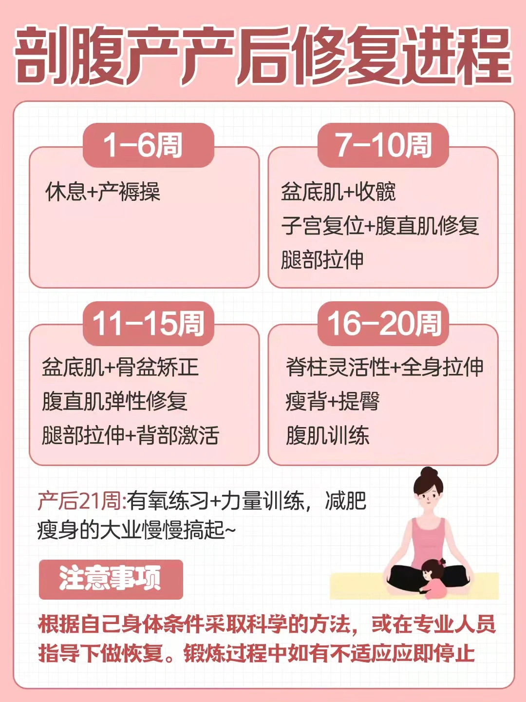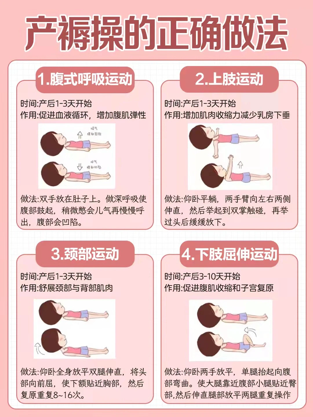 🔸根据产妇自身情况量力而行,运动量由小到大,循序渐进,避免过度劳累