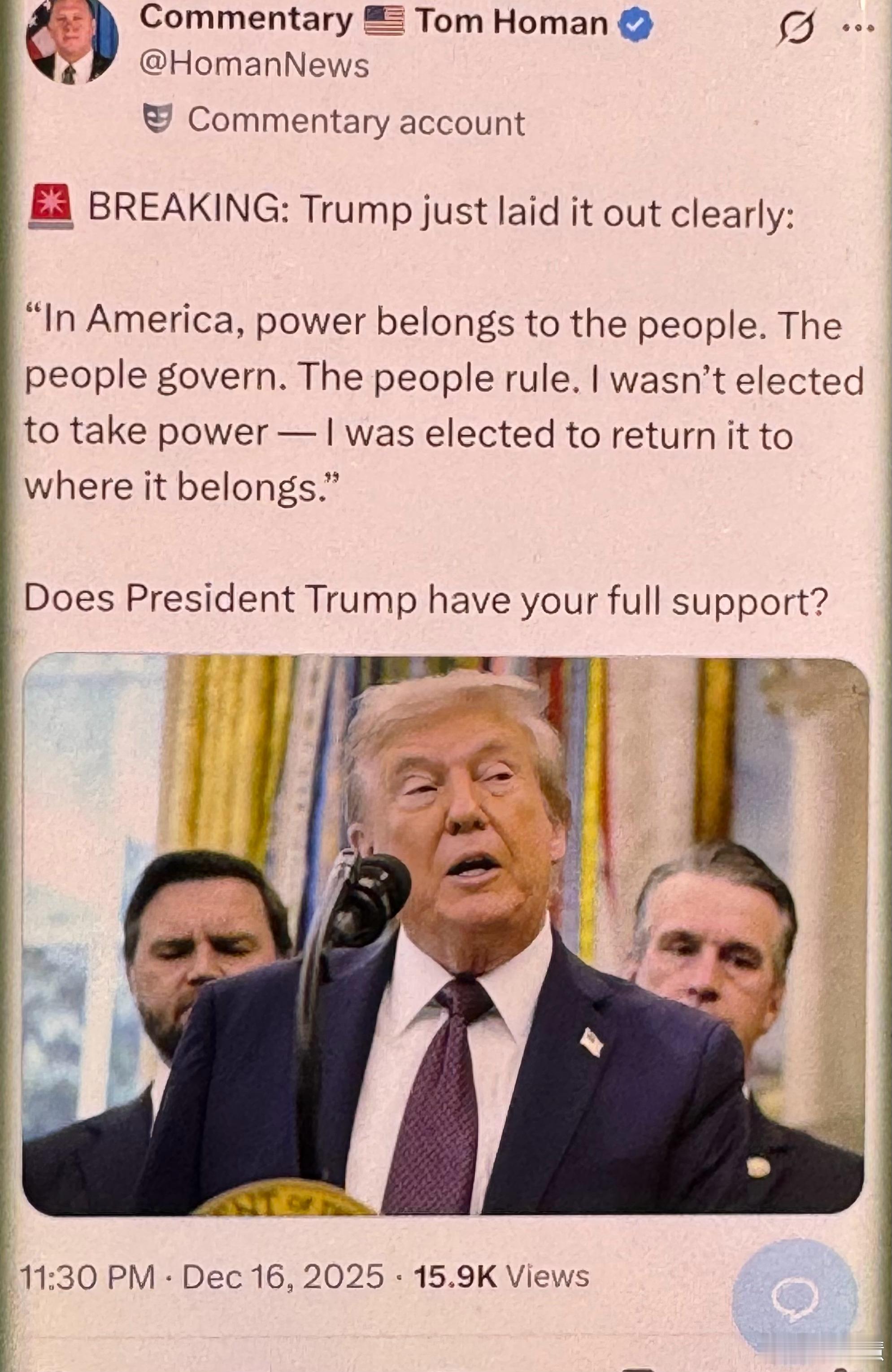 突发消息:特朗普刚刚明确表态:“在美国,权力属于人民。人民执掌国政,人民当家作主。我当选的目的并非夺取权力——而是将权力归还其应属之地。”慧眼辣评 :你是否认为特朗普说的比唱的好听!