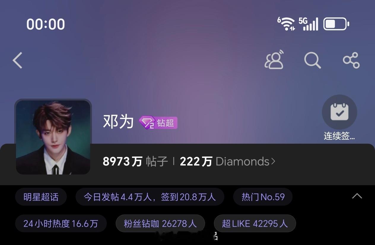 邓为超话昨日发帖4.3万+,超like4.2万+邓为宠粉满分,邓为粉丝人美心善豪