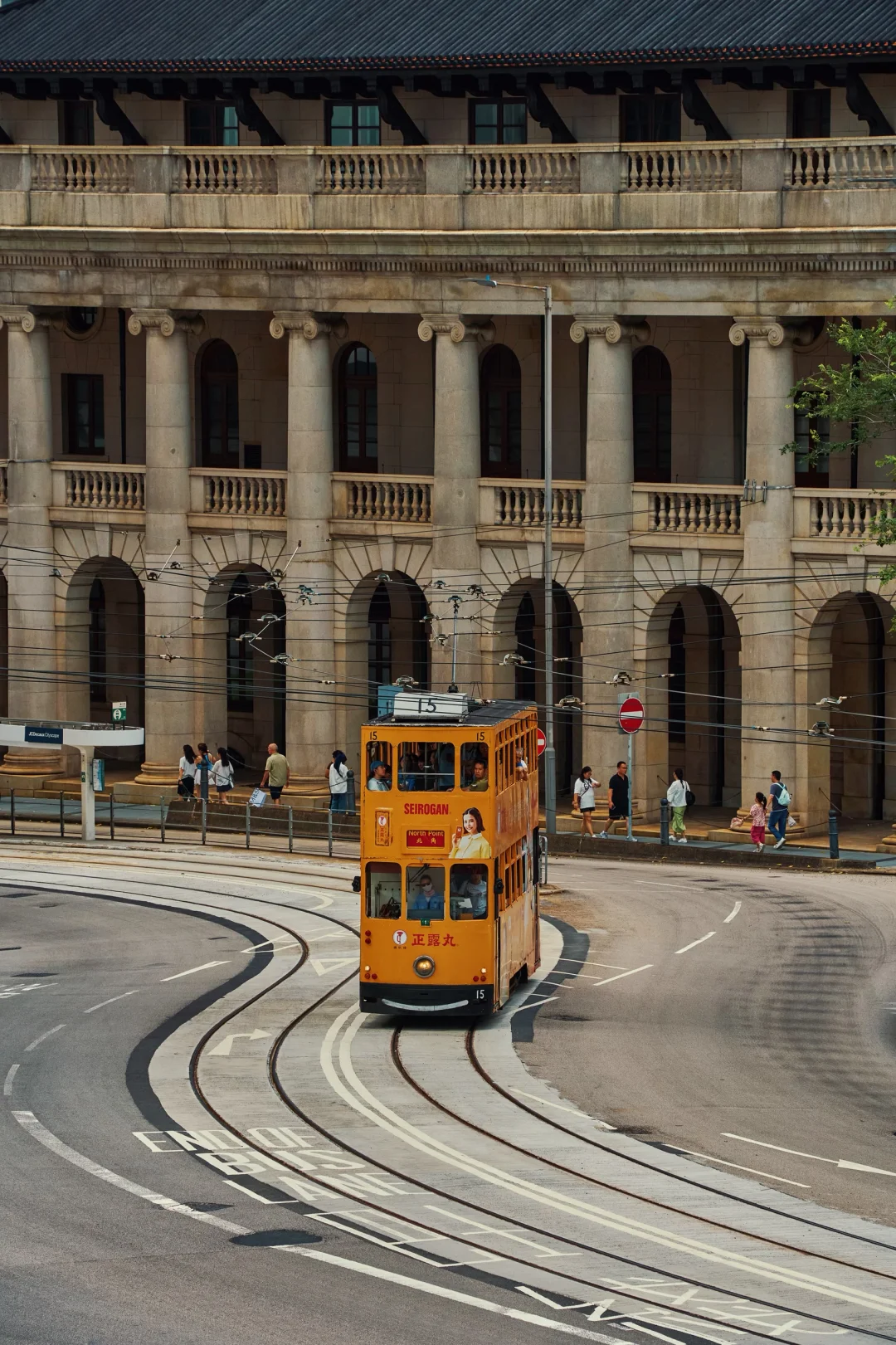8.中银大厦S弯:在中银大厦旁天桥这里,后面的复古建筑与S弯叮叮车同框,复古氛围拉满