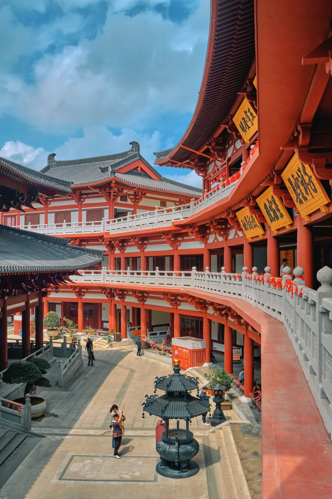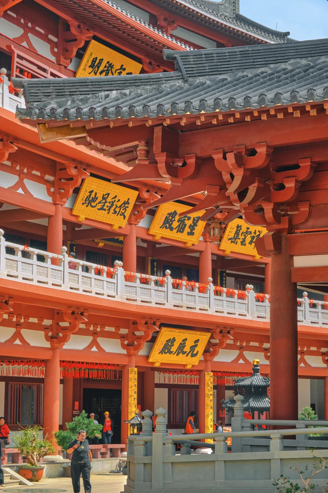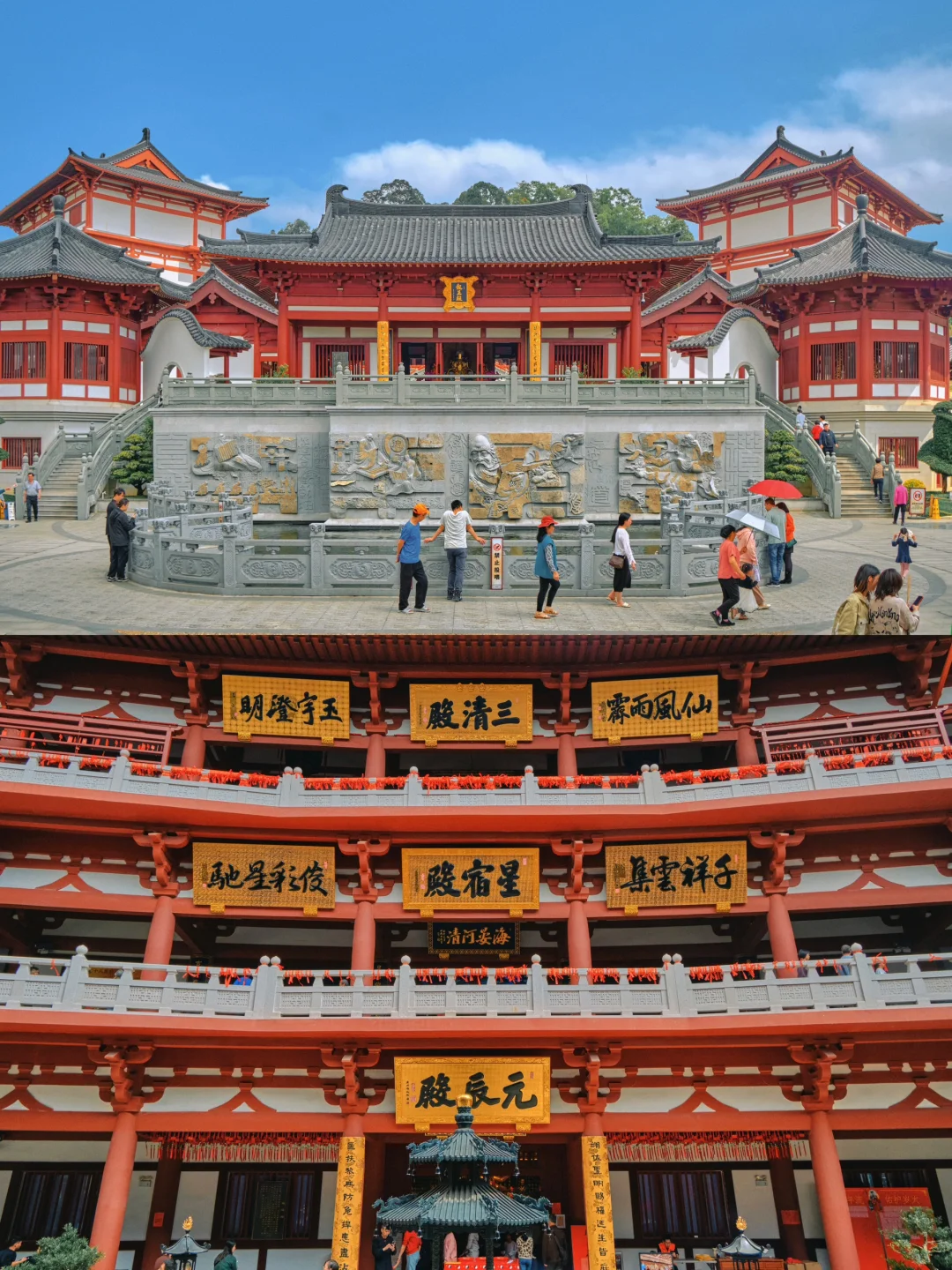 耗时10年重建的赤松宫,以盛唐气象为骨,岭南风韵为魂。主建筑呈巨型葫芦状,寓意“福禄双至”