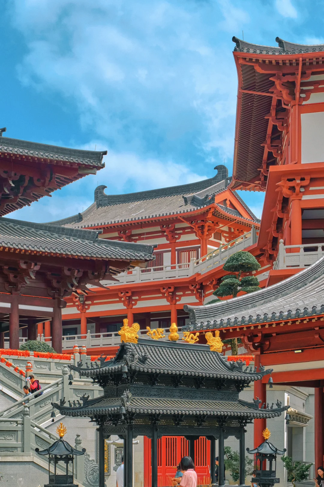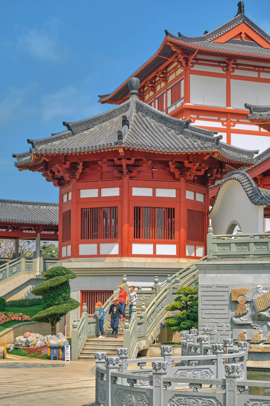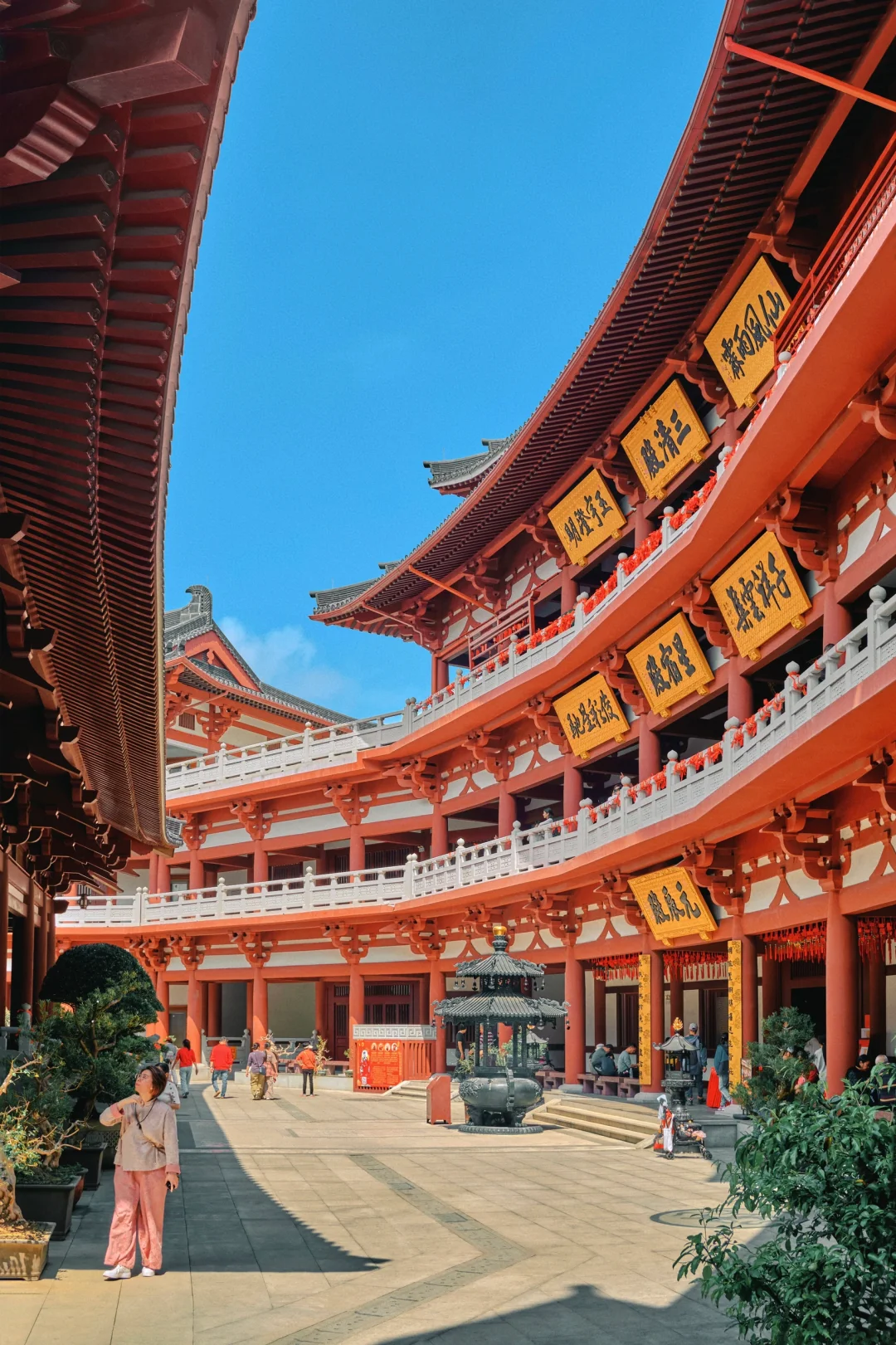 耗时10年重建的赤松宫,以盛唐气象为骨,岭南风韵为魂。主建筑呈巨型葫芦状,寓意“福禄双至”