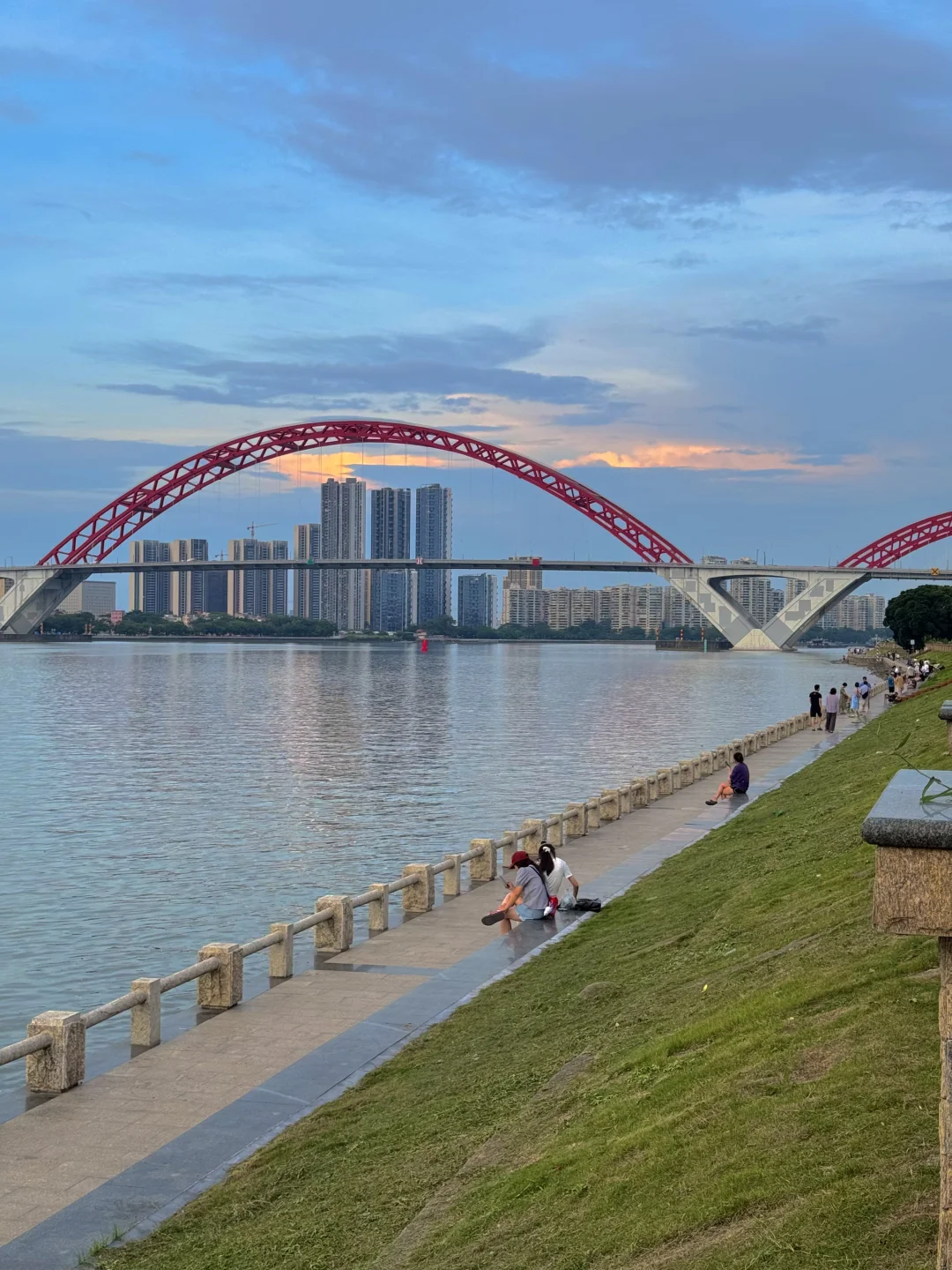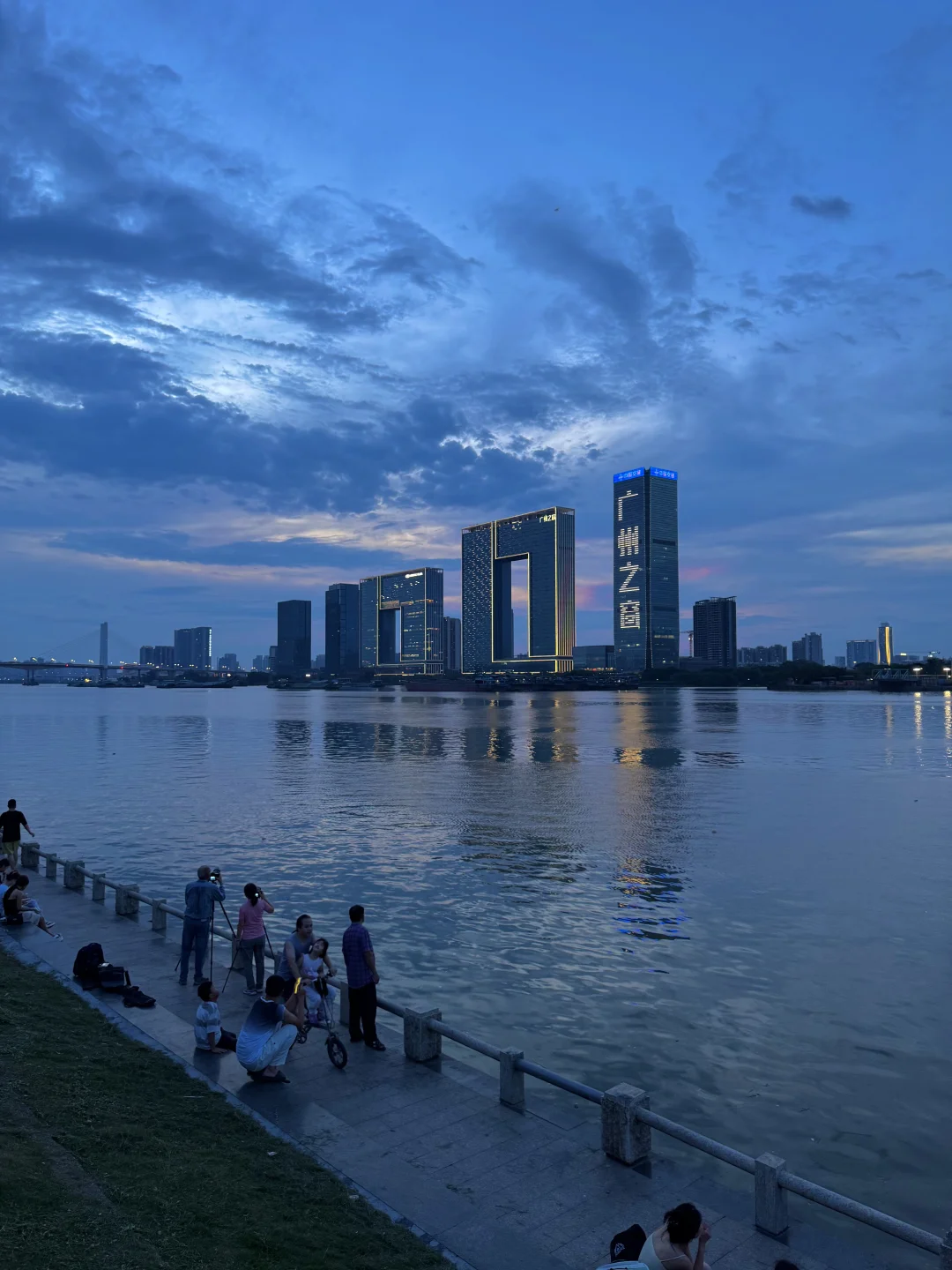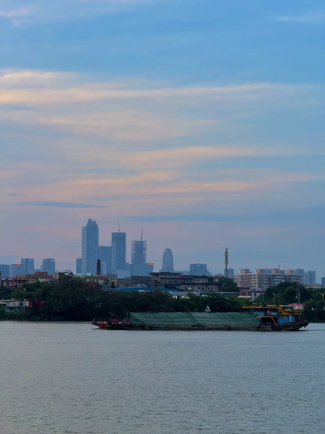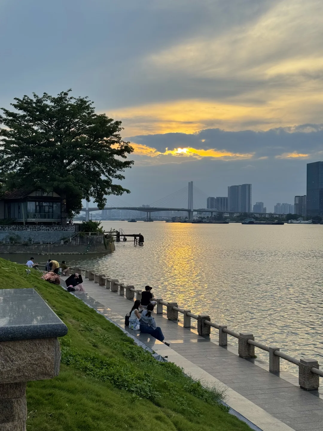 这里属于广州的小众江景!平时来的人不是很多,基本上都来看看夕阳,吹吹晚风的小伙伴。与广州之窗隔江对望,远处广州塔在暮色里若隐若现,氛围松弛到想原地躺平~