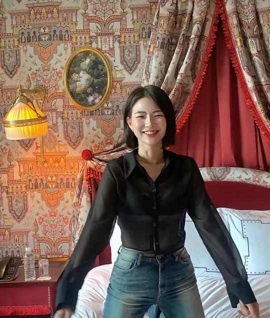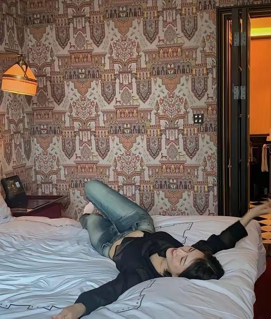 牛仔裤美女,床上躺平不贴腿牛仔裤女
