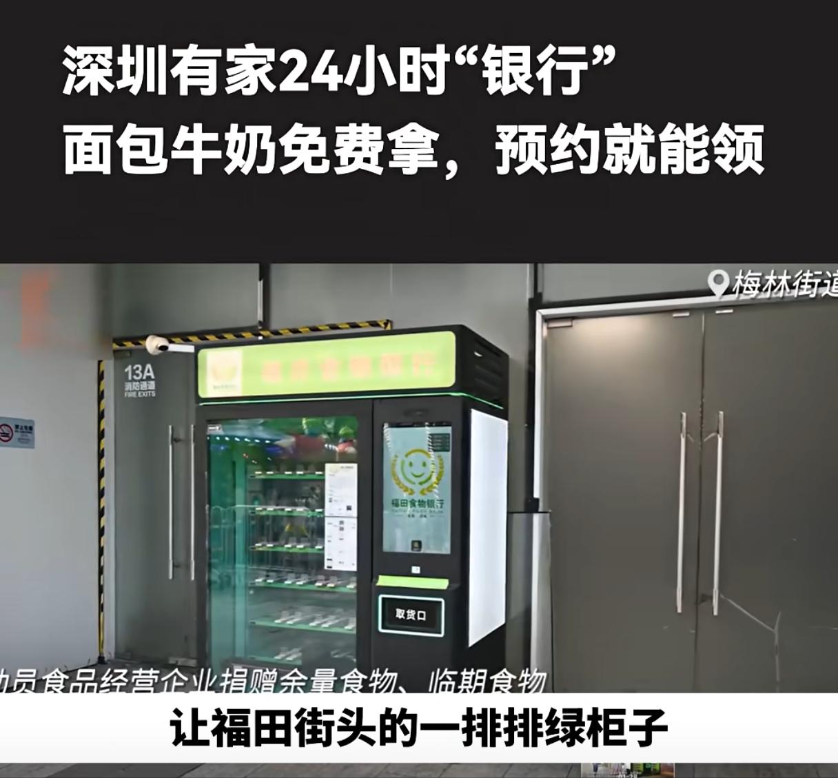深圳福田区福强路益田大厦一楼的24小时“食物银行”智能柜机火了,这是个运行三年半的公益项目,已惠及48.4万人次。 这里每天都有新鲜物资,像退役老兵捐赠的“老兵馒头”,每天新鲜现做。还有企业捐赠的新鲜蔬菜、面包等,团队每天早上集中投放,上午基本就被取完。 这个模式之所以受推崇,是因为打通供应链,让临期食品物尽其用;线上预约、线下领取的方式,守护了受助者的尊严;分时开放,先特惠后普惠。这哪只是“食物银行”,分明是城市温暖的储蓄罐,为弱势群体提供着实实在在的帮助。 益田购物广场