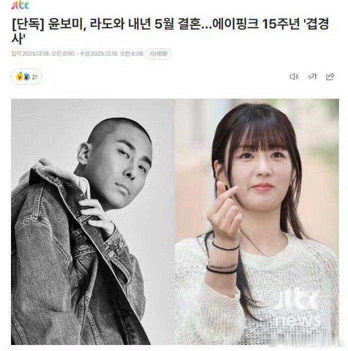 Apink尹普美、黑眼必胜Rado将于明年5月结婚两人经历9年热恋 将携手步入婚姻殿堂