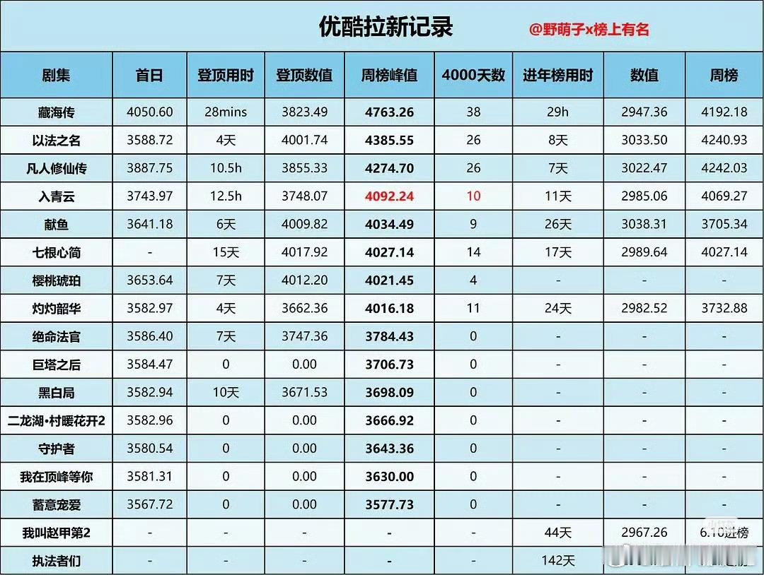 藏海传29h进年榜给了很多人优酷年榜很好进的错觉,事实上除了藏海传,剩下的今年最快的都用了7天……