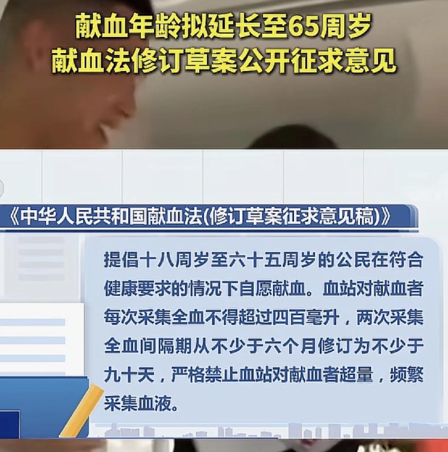 重要通知:献血法修订草案公开征求意见。献血年龄延长至65周岁。首先我同意这个修订