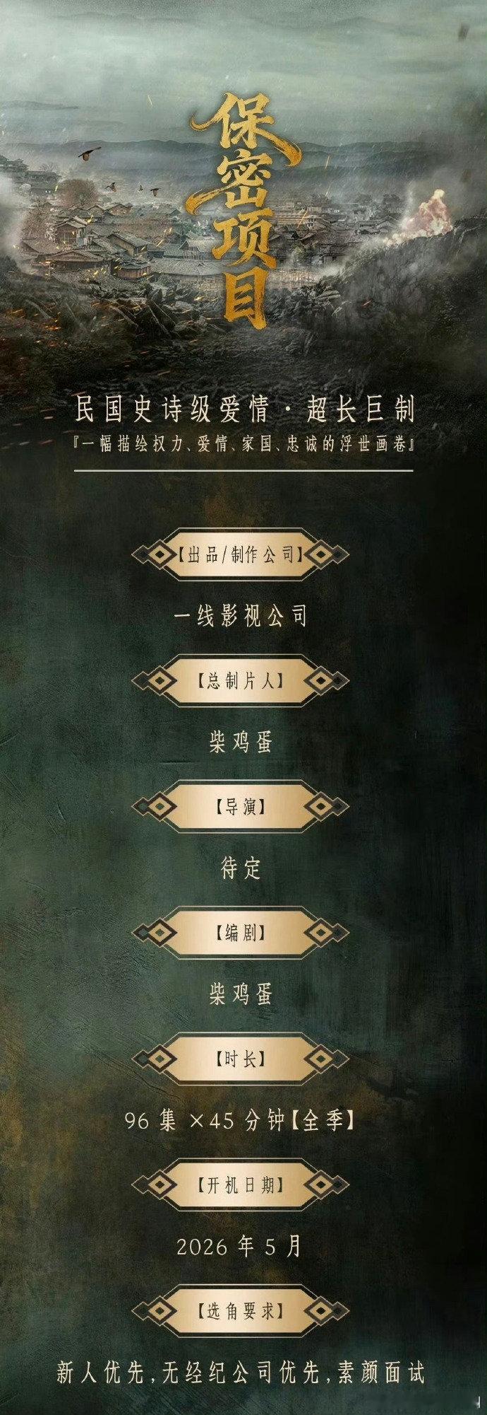 柴鸡蛋新剧。民国史诗级爱情,96集,每集45分钟,感觉会有很多男的蠢蠢欲动柴鸡蛋