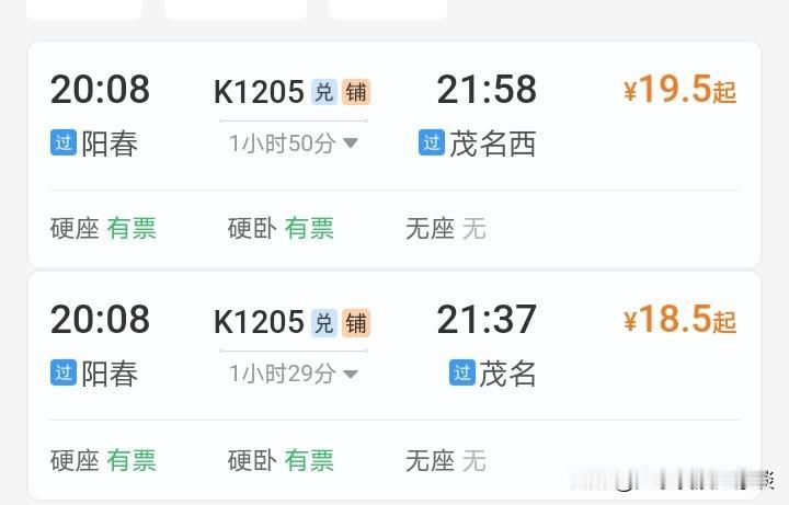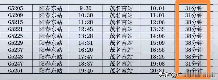 广湛高铁从阳江(阳春东站)到茂名南仅需31分钟,票价预计 100 元左右,每日有 10 趟高铁车次。 阳春至茂名约 130 公里,对比普铁,普铁票价只需18元元,用时约一个半小时。 大家不妨对比下两者的性价比。从阳江阳春前往茂名,究竟是乘坐高铁,还是搭乘普通火车更为合理呢?大家怎么看? 广湛江高铁 粤西高铁站 合湛高铁站 佛山广湛高铁 广州至湛江高铁 广东高铁 广深线高铁
