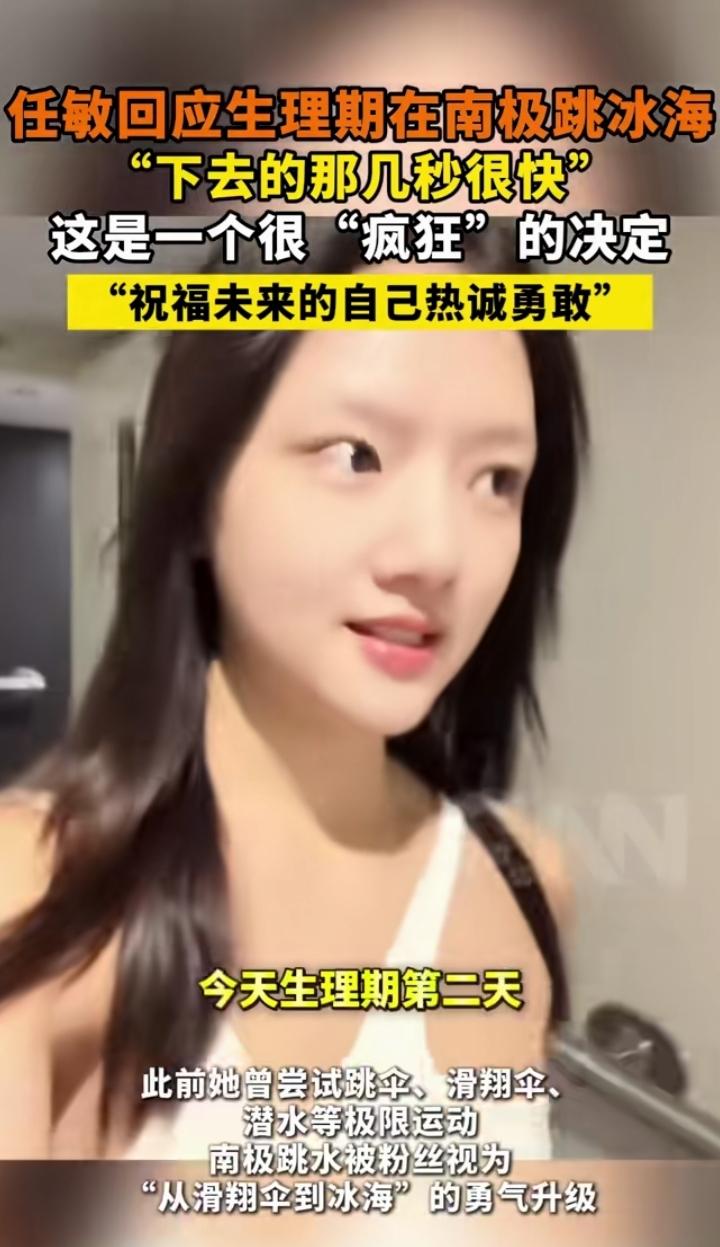 任敏也太疯狂了吧!一个人独自跑去南极,还在生理期第二天跳冰海,真是猛女!!她为了让自己的生日旅行更有意义,明知生理期还铁了心地往冰海里跳,大冬天在南极,穿着比基尼往刺骨的海水里扎,看着她还挺开心挺快乐,太佩服她的勇敢了,她那发自内心的快乐全写脸上了,不知道她的身体能扛得住吗?
