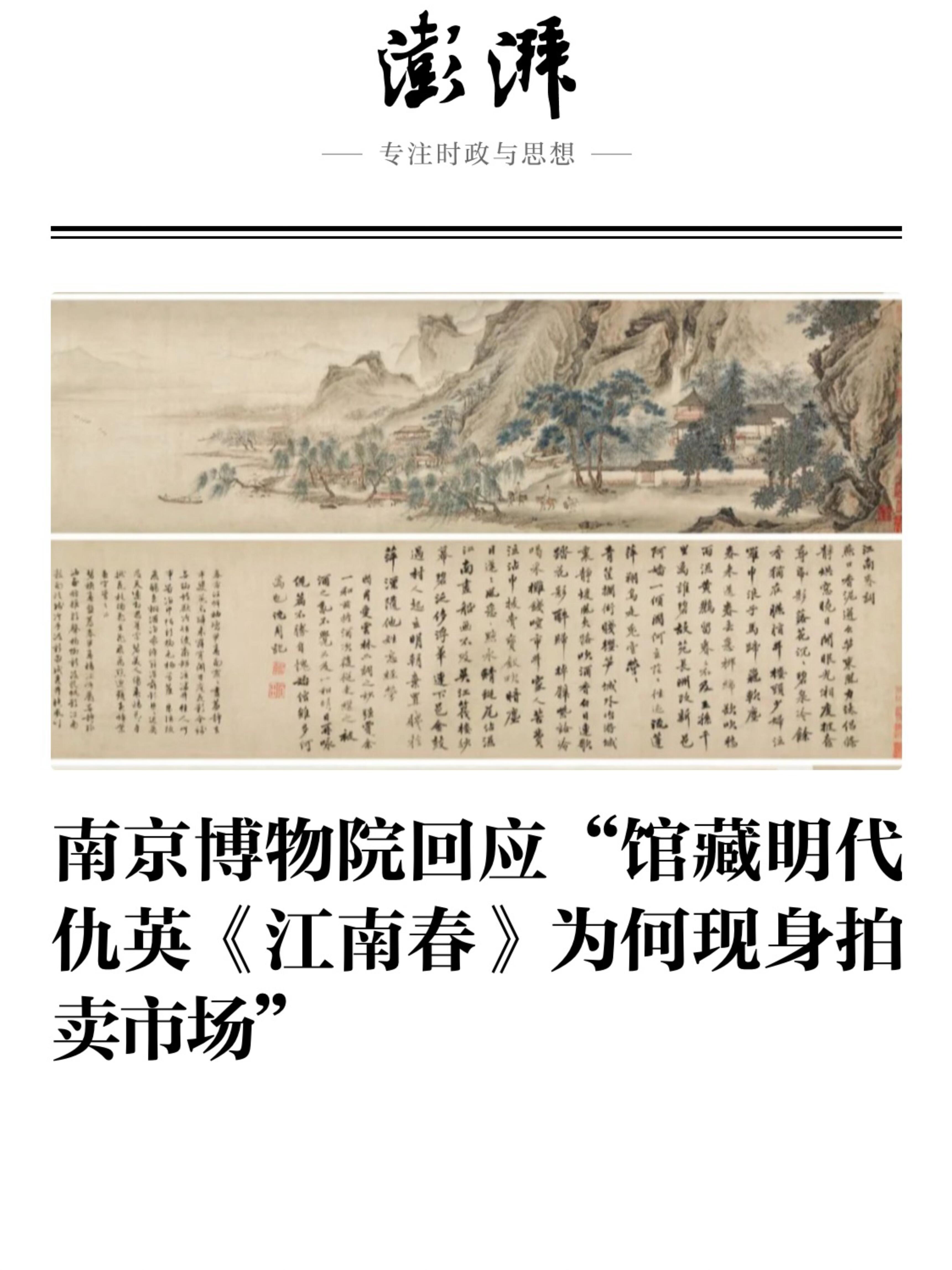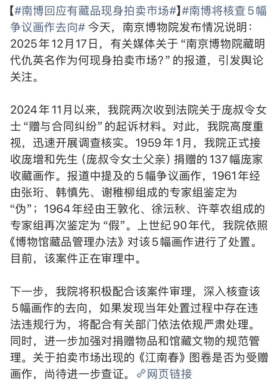 南博回应有藏品现身拍卖市场南博将核查5幅争议画作去向 南京博物馆看着挺正规的啊,谁胆子这么大,敢把馆藏物品拿去拍卖?祖辈捐赠给博物馆的物品,子孙可以要回来吗?我还特意查了一下