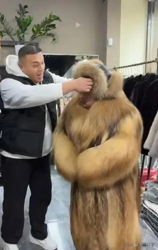 山东大哥进店本来只想试试皮草,店主一句“您穿上就是老板”,直接给他夸飘了。 店主一句话说得大哥心里暖哄哄的,笑得合不拢嘴。 大哥正准备买单带走,没想到店主又轻飘飘补上一句:“哥,再配个帽子就更完美了。” 大哥戴上帽子后如获至宝,高兴得手舞足蹈,帽子也爽快打包了。 原来最高明的销售,从来不是推销商品,而是给顾客赋予合适的“身份”。夸到位了,男人花起钱来,果断又大方!