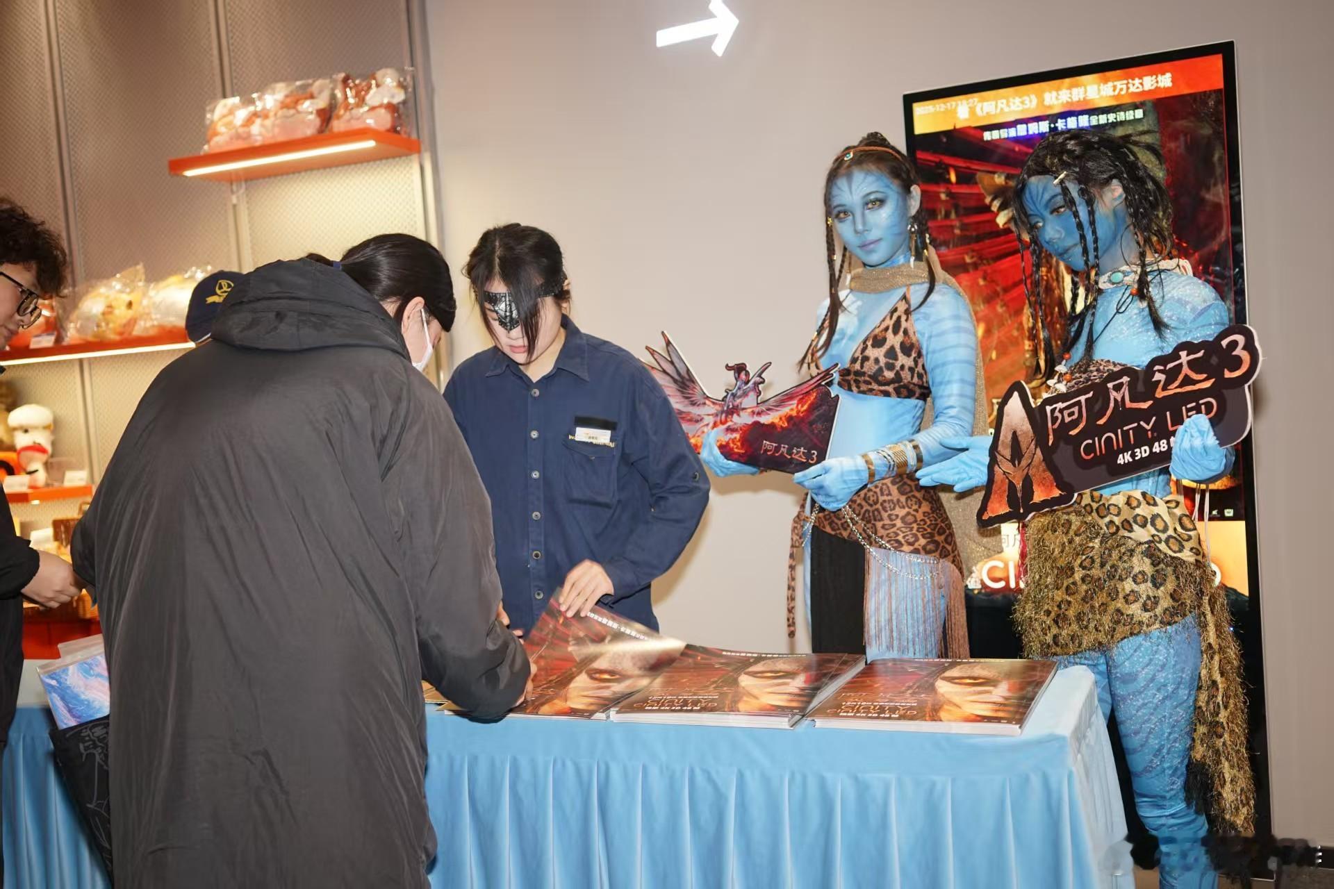 刚刚看完《阿凡达3》回到家,刚缓过神来。卡神就是卡神,这片子视听效果太棒!意犹未尽仿佛还在潘多拉星球上! 今晚上在万达影城CINITY厅看的超前点映,这个银幕超通透,4K+3D+48 帧的组合,直接把潘多拉的美景怼到眼前,星球的每一帧都仿佛“触手可及”,战斗场面代入感超强!!夜光森林的斑斓、水下的光影流转都非常细腻鲜活。看电影前还领了《阿凡达3》CINITY的温感票根。万达影城这几天都有特典活动,今天有CINITY独家的海报和温感票根等,本来是张黑透卡,结果手心一热,隐藏的海报图案就慢慢显出来了,和电影主题绝配!很有收藏价值都在排队领呢!明天开始还会有万达电影独家艺术海报等特典,马上准备二刷!我看有些万达影城还有纳威人在检票~