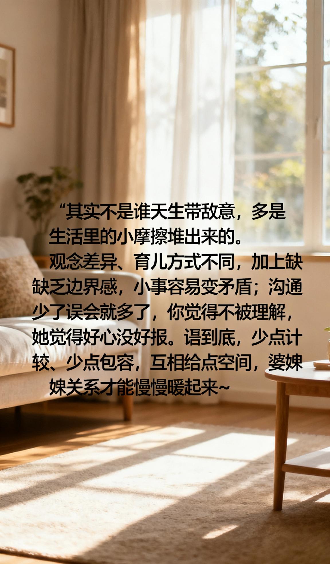 为什么现在很多媳妇都说婆婆不好? 其实不是谁天生带敌意,多是生活里的小摩擦堆出来的。观念差异、育儿方式不同,加上缺乏边界感,小事容易变矛盾;沟通少了误会就多了,你觉得不被理解,她觉得好心没好报。说到底,少点计较、多点包容,互相给点空间,婆媳关系才能慢慢暖起来~友友们,你们说是不是?评论区聊聊!婆媳关系 婆媳相处之道 媳妇婆婆相处 婆媳观念