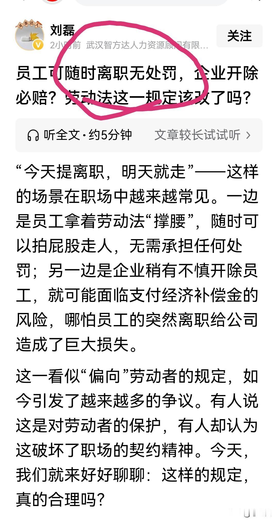 员工随时离职,无处罚。这句话根本站不住脚。员工私自离职,不提前一个月通知,企业就不发工资。我们企业现在就是这样做的。不知他说的无处罚是从哪里来的? 我也知道有一些个人老板,雇佣了三五个人,随时来,随时走,这种情况是有的。但是这样老板一般都不给上保险。本身用工就是不合法的。 大家论论,个人和老板谁的权利更大?
