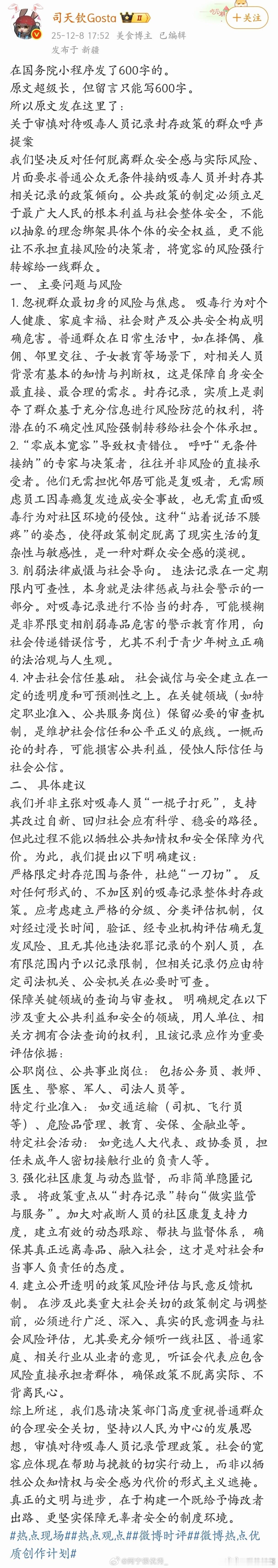 知名大V关于谨慎对待吸毒记录封存的提案,看了全文,令人深思,全社会应当严肃对待!