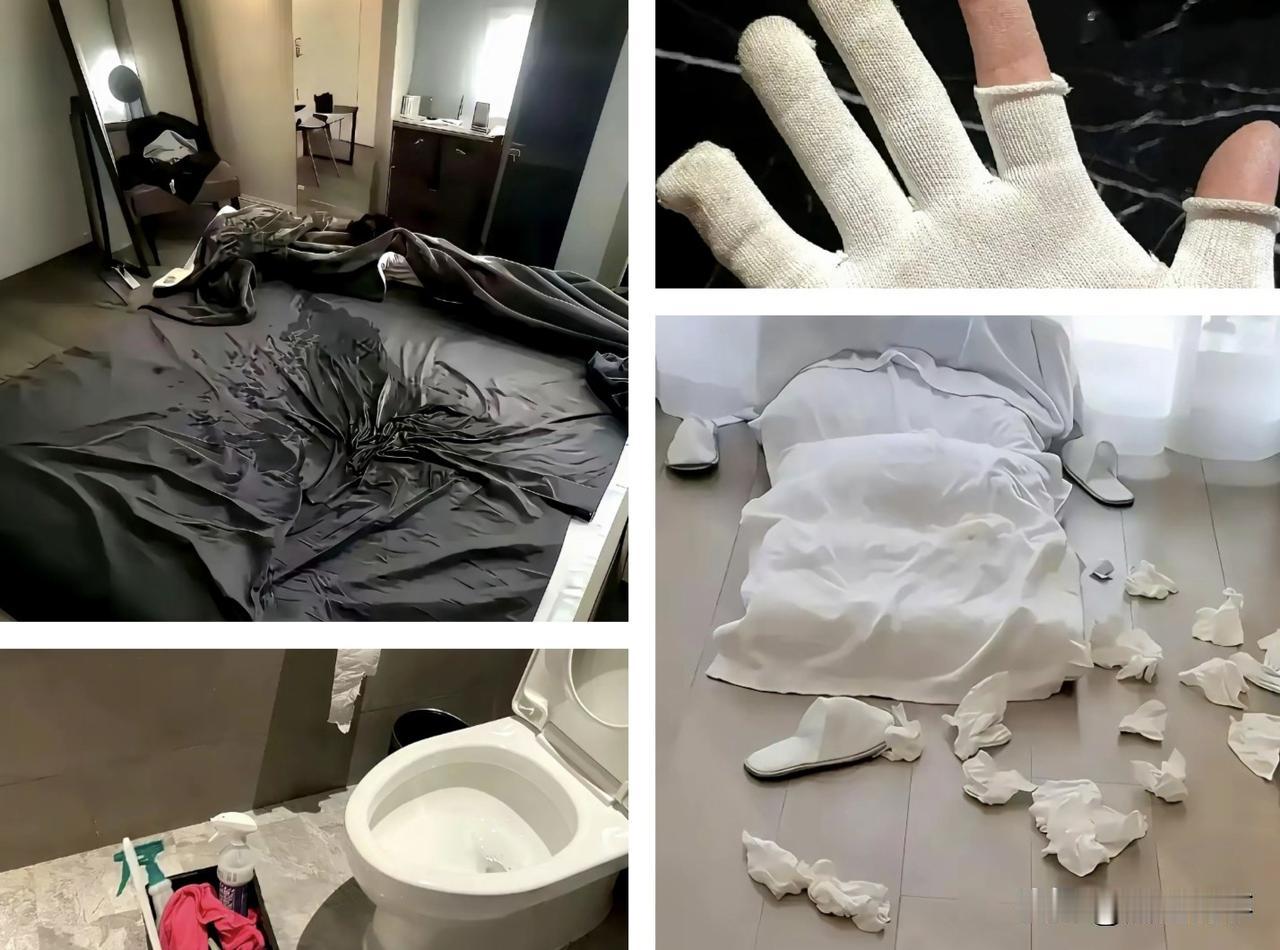 天啊,保洁大姐打开房门后,直接傻眼了,钟点房里满地的粘稠纸巾,床单上也是湿答答的,即使带着手套都无从下手,直言这活没法干了,分分钟都想逃离。 据说是几个年轻男女开了4小时的钟点房,在里面玩了很久,最后拍拍屁股走人了,留下一片狼藉给保洁收拾。 钟点房估计也就百来元,却给酒店带来太多麻烦了,这生意真不好做。 最可怜的是保洁大姐,估计被恶心到了,只是没办法,为了生活只能硬着头皮收拾。酒店保洁