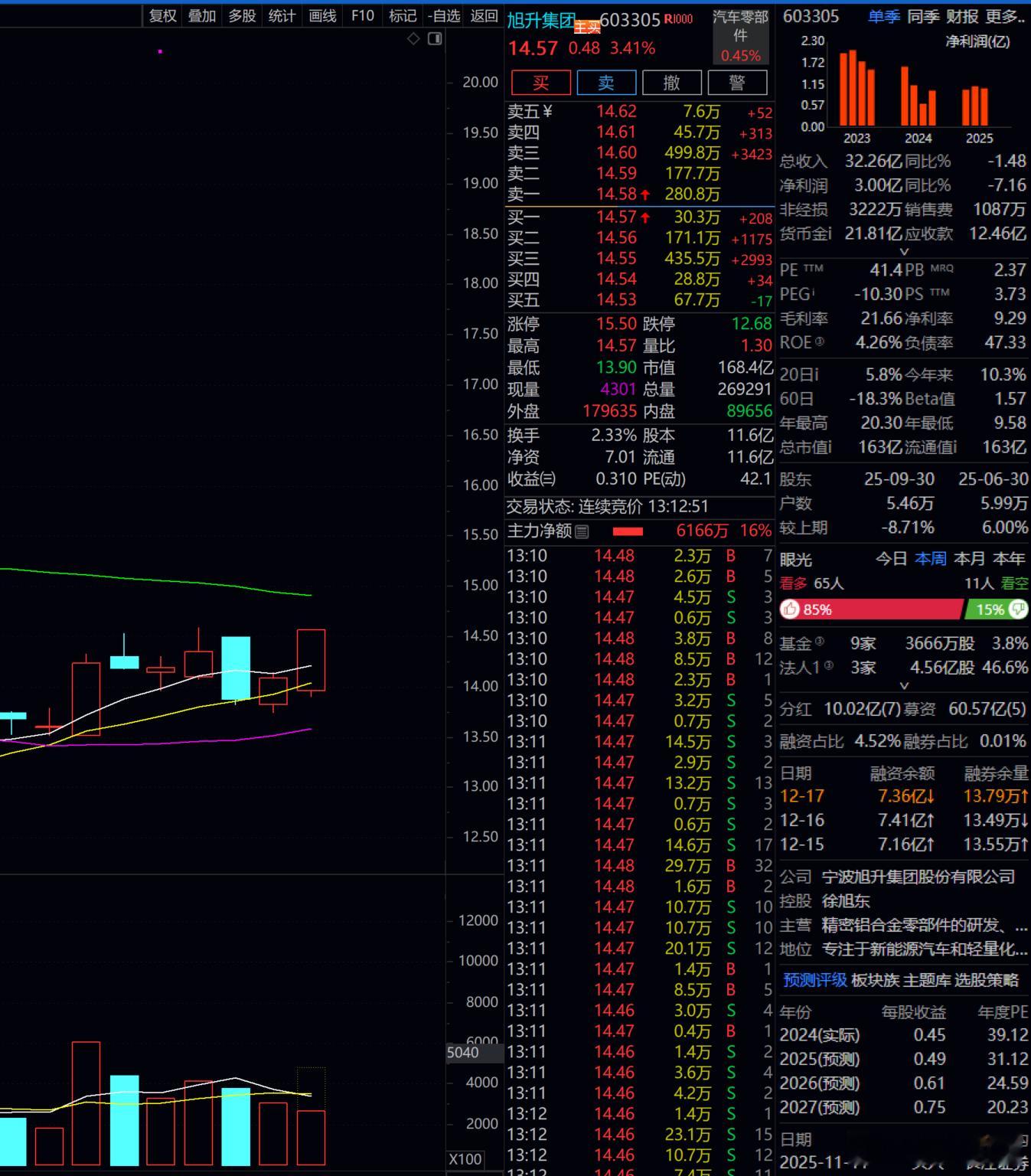 旭升集团 拿了半个月了!!目前整体趋势动能还是不错的!!不破位的条件下,拿个