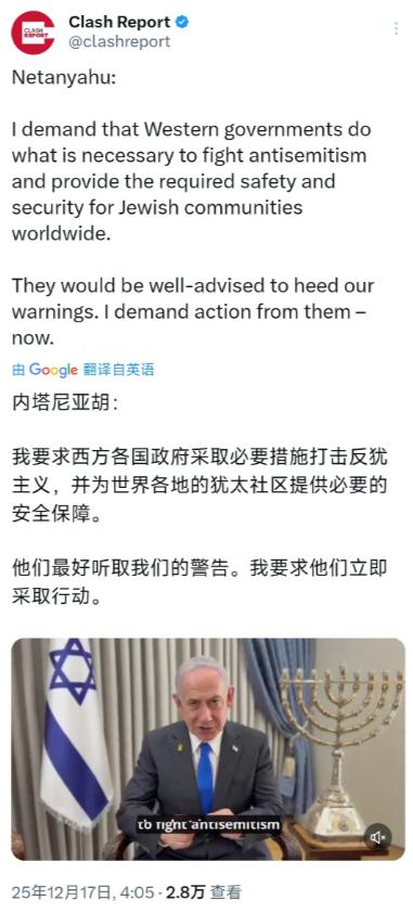 以色列总理内塔尼亚胡12月17日表示:“我要求西方各国政府采取必要措施打击反犹主义,并为世界各地的犹太社区提供必要的安全保障。他们最好听取我们的警告。我要求他们立即采取行动。” 在他发声前一天,澳大利亚刚曝出一组扎心数据:过去一年记录了1654起反犹事件,是以色列入侵加沙前的3倍,而这只是全球反犹浪潮的一个缩影。 现在的反犹主义早已不是历史书里的老故事,而是街头巷尾的暴力威胁。美国联邦调查局早有定论,2022年全美仇恨犯罪创1991年以来新高,犹太裔是主要受害者之一,到了2025年情况更糟,5月华盛顿的首都犹太博物馆外,以色列驻美使馆两名工作人员被近距离枪杀,凶手被捕时还高喊“解放巴勒斯坦”。 欧洲的火药味更浓,法国南部一座犹太教堂遭纵火,一名警察受伤;荷兰阿姆斯特丹的足球赛后,以色列球迷被围殴致20多人受伤,警方一口气抓了62个嫌疑人;德国伍珀塔尔的犹太教堂被人纵火,戴犹太小圆帽的路人在街上直接被袭击,连“犹太人,懦弱的猪”这种纳粹时期的污言秽语都死灰复燃。 内塔尼亚胡之所以敢用“警告”的语气对西方说话,是因为他手里攥着太多“西方失职”的证据。今年8月他就曾给法国总统马克龙写过措辞激烈的邮件,骂对方呼吁承认巴勒斯坦国是“给反犹主义火上浇油”,指责法国政府对街头肆虐的反犹行为“缺乏果断应对”。 对澳大利亚总理阿尔巴尼斯,他更是直接扣上“软弱政客”的帽子,称澳方放任反犹主义蔓延,才酿成了后续的暴力袭击。这些不是空穴来风,法国作为欧洲犹太人口最多的国家,自2023年10月巴以冲突升级后,反犹事件就开始激增,即便政府安排警力在犹太教堂、学校周边巡逻,仍挡不住极端分子的破坏。 更让以色列焦虑的是“新反犹主义”的抬头,越来越多人把对以色列军事行动的不满,转嫁到普通犹太民众身上。澳大利亚社交平台数据显示,以色列入侵加沙后,针对犹太群体的极端帖文从每月34条暴涨到2021条,而把“以色列”和“儿童杀手”捆绑辱骂的内容,更是从每月505条飙升至2.1万条。 这种混淆“反以”和“反犹”的逻辑,让全球1600万犹太人成了“替罪羊”,也成了内塔尼亚胡向西方施压的核心抓手。他很清楚,西方政府一边要回应国内对加沙的人道主义关切,一边又背负着二战后“保护犹太民族”的历史责任,这种矛盾让反犹主义有了滋生空间。 但西方的处境也很微妙。德国算是对反犹问题最敏感的国家,默克尔曾在勃兰登堡门前的集会上公开承诺“犹太朋友在德国就是回家了”,6000多民众和各大政党、足协都参与声援,但即便如此,20万在德犹太人仍难逃恐吓电话和街头袭击。 法国内政部长喊着“安保措施必须看得见”,甚至调军队支援巡逻,却还是挡不住反犹事件的增长。这种“越防越乱”的困境,本质是巴以冲突的外溢效应,只要加沙的人道主义危机不缓解,极端情绪就会持续向犹太社区蔓延,西方再强的安保也只是治标。 内塔尼亚胡的喊话还有一层没说透的私心,眼下他在国内的执政压力不小,对外强调“保护全球犹太人”,既能凝聚犹太民族的向心力,也能把以色列的安全议题和西方的价值观绑定。 毕竟对美国、欧洲来说,二战中对犹太人的漠视是历史污点,打击反犹主义是政治正确的“硬指标”。他就是要抓住这一点,倒逼西方在批评以色列军事行动时“手下留情”,同时争取更多安保资源支持。 不过明眼人都清楚,光靠西方加强巡逻挡不住仇恨。澳大利亚犹太人委员会的报告早就指出,“旧反犹主义”是根深蒂固的偏见,“新反犹主义”是冲突引发的迁怒,两者叠加才让危机升级。 内塔尼亚胡的警告值得重视,但真正的解决之道,既要靠西方拿出实际行动,比如德国那样强化反犹教育、法国那样落实安保措施,更要靠巴以冲突的政治解决。否则,再强硬的喊话,也护不住那些在街头瑟瑟发抖的普通犹太人,毕竟仇恨的火焰,从不会只烧向某一方。