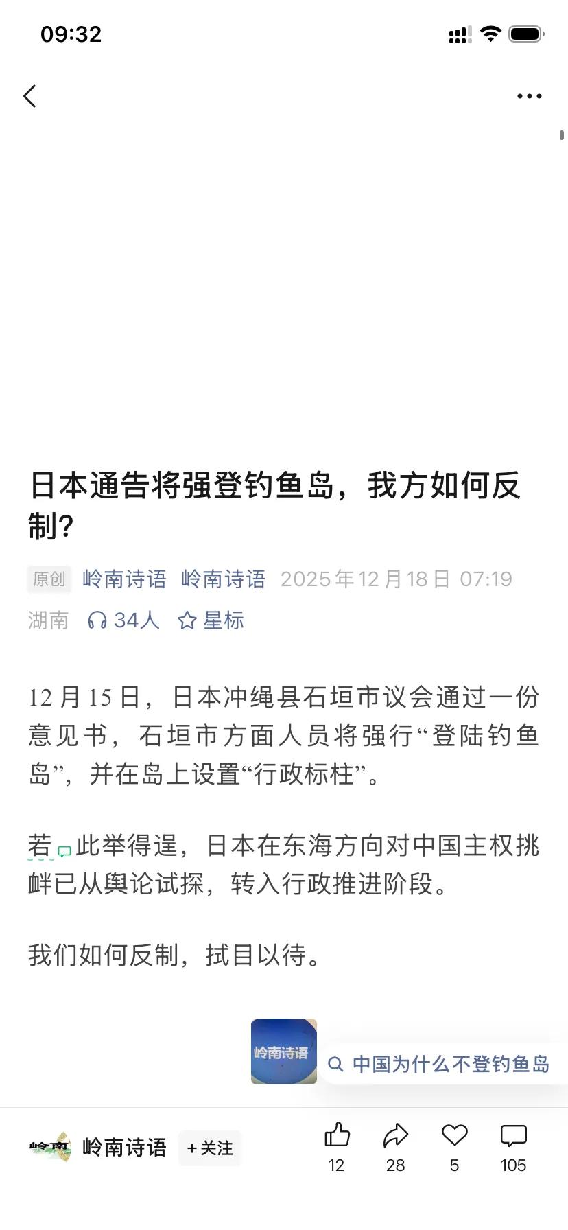 日本准备再次兴风作浪,钓鱼岛恐成冲突爆发点。 12月15日,日本冲绳石垣市议会通过一份意见书,将要组织人员强行“登陆钓鱼岛”并在上面设置“行政标识”。 如果日本政府默许冲绳县的行为,这将会把中日关系推至前所未有的冰点。高市早苗的一句话,就成功让全国网友骂了一个多月,官方媒体更是下场连发数十篇文章抨击。如果冲绳县真的强行“登陆钓鱼岛”,迎接他的将会是“帝国的愤怒”。