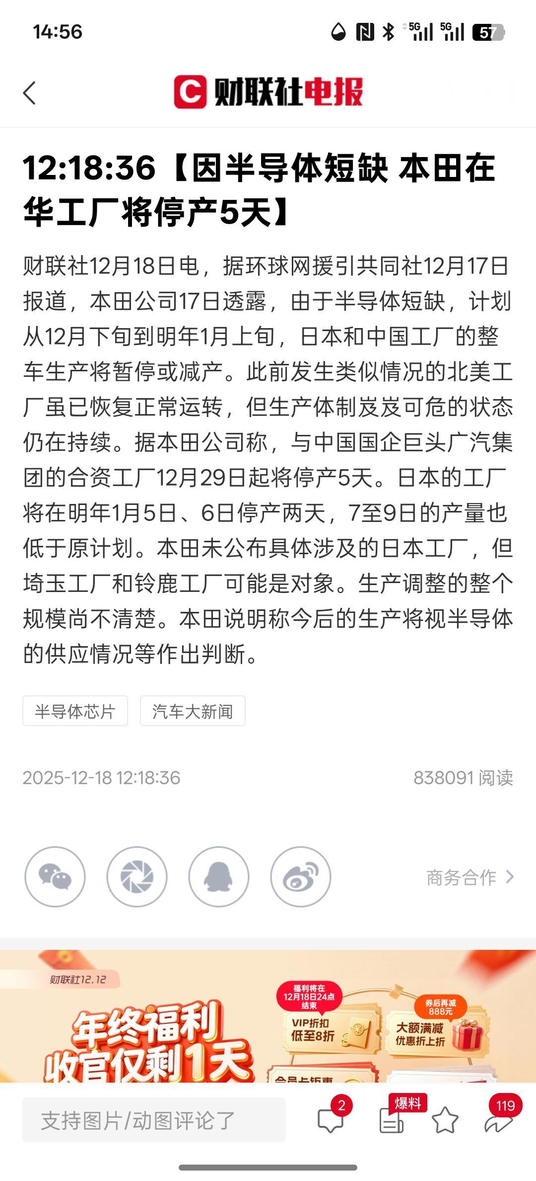 因半导体短缺 本田在华工厂将停产5天,看来芯片半导体的短缺延伸到汽车行业,现在日本车厂要开始停产,到12月份的下旬到明年1月份的上旬,日产车将会停产甚至减产。芯片短缺依然还在延续,我们国内的汽车行业有国产替代的芯片半导体,大概率是不会出现这样类似的问题!芯片半导体行业的发展业绩增量依然还要延续! 中国的汽车销量出口海外市场逐步的增长,在英国增长速度非常快,大多数汽车不受关税影响!