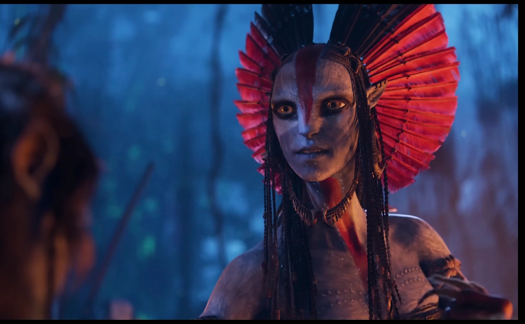 依旧是专为影院特效厅大银幕而生的视听核弹,电影视效的天花板再次被卡梅隆推高!《阿凡达3》在融合第一部的瑰丽森林和第二部的浩瀚海洋之外,还大篇幅展示了辽阔天空——风行商队的巨型天空生物、翼兽的俯冲翱翔、不同族群间的大范围追逐缠斗等,鸟瞰画面壮美不已,主观镜头则真正让人身临其境,与坐骑一同升降、冲刺和闪躲。动作戏密度大幅提升,除了主角团与战机及飞行器的较量、灰烬族的空中袭击外,迫降着陆的森林逃亡、深入敌后的惊险营救段落也都看得人大呼过瘾。海洋场景也分量颇多,蜘蛛在岛礁族伙伴带领下游弋时突遇成群希鱿袭击,这段戏贡献了全片最惊心动魄的主观镜头之一(高帧率3D太适合表现这种高速运动)。最终决战空前宏大复杂,呈现了海陆空立体协同作战的盛景,空中是骑着翼兽的纳威人对抗人类战机,海上是岛礁族的攻击和巨大图鲲跃起砸击舰船,水下还有希鱿破坏敌军的潜水器,另一边更有你来我往的近身搏斗……本作的战斗实在丰富到不行,节奏紧凑的同时动作细节又足够清晰,看完只觉意犹未尽~这部全新登场的灰烬族居住于火山熔岩地带,凶狠好战,他们的女祭司瓦琅极具野心,又疯又美,一出场就自带勾魂慑魄的力量(那场帐篷里的“迷幻+吐真”戏,是本片另一个使我印象至深的强3D段落)。反叛的瓦琅与人类的临时结盟中又不时暗含张力;库里奇上校虽然依旧是偏执的反派,但他对蜘蛛的父子情似乎并不全是表演,与杰克的关系也不再始终冷硬地如铁板一块;蜘蛛经历了从异类到被接纳的过程,甚至与菌丝体交融共生,成为唯一能在潘多拉星球自如呼吸的人类;洛阿克与图鲲帕亚坎的跨物种情谊更加浓厚,他最终成功说服图鲲首领走出一味逃避抗争的泥潭。可以看出,本片中的人物刻画更上一层楼,不是简单粗暴非黑即白,而是更有深度、灰度,有摇摆,有成长,亦有转换与融合。一句话,《阿凡达3》视效体验在大银幕上一骑绝尘,动作场面震撼力十足,人物刻画更上一层楼,属于年度必去影院观看的大片~阿凡达3不只是电影更是享受阿凡达3跨年电影愿
