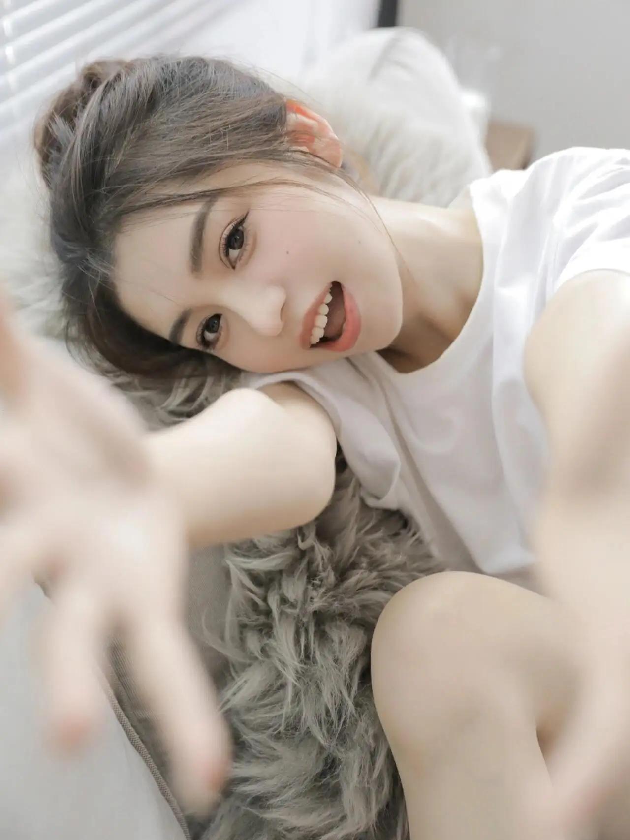 秋日暖阳下,红叶飘飘,少女轻倚树旁,岁月静好。