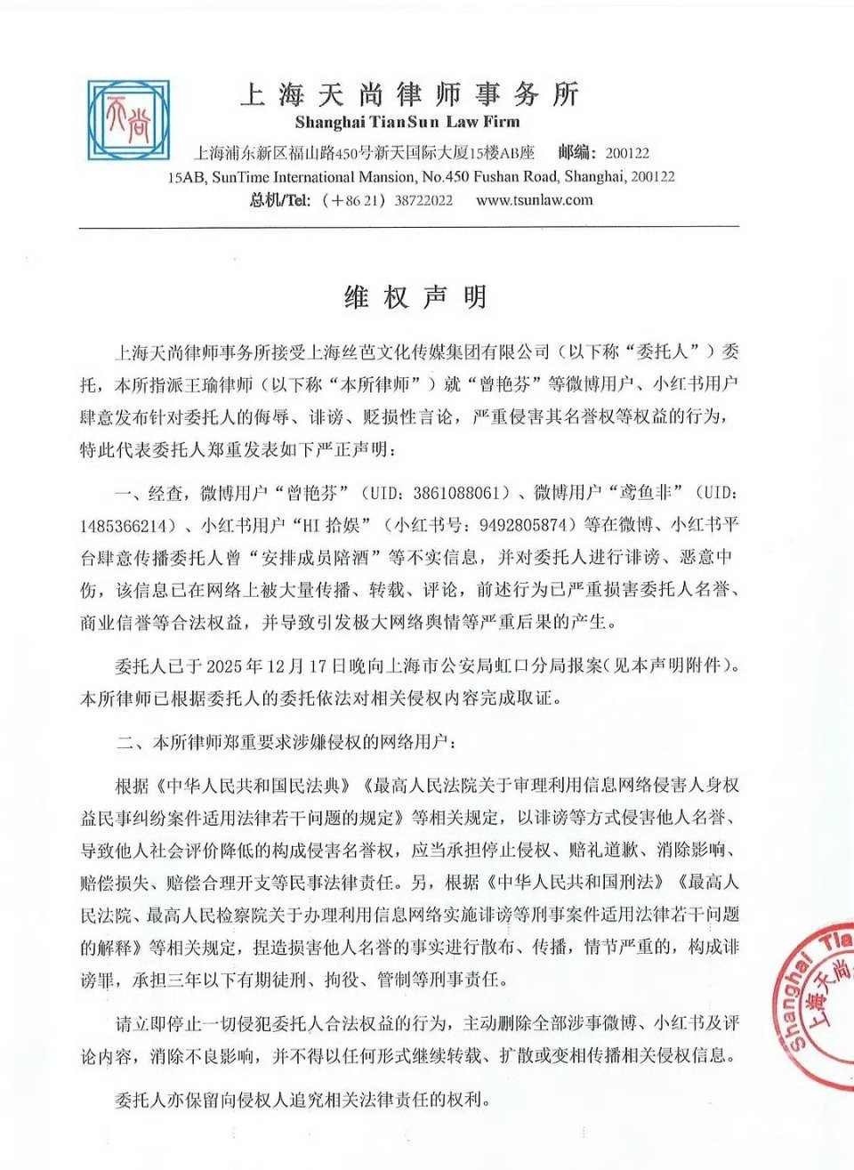 丝芭发文,致艺人鞠婧祎的最后告知说要对鞠婧祎实名公开举报